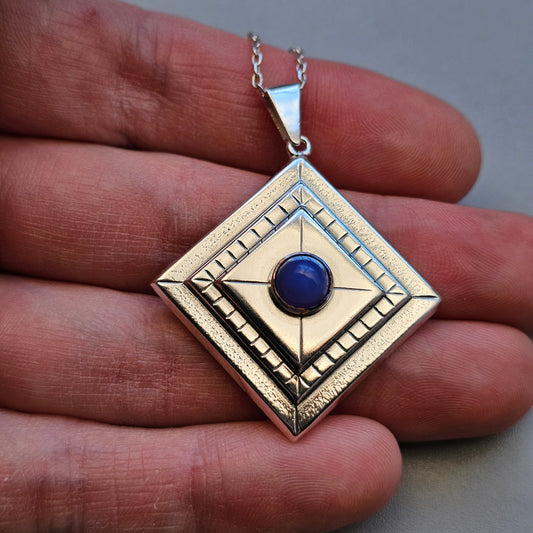 Vintage Modernist Finnish Silver & Blue Chalcedony Necklace Pendant