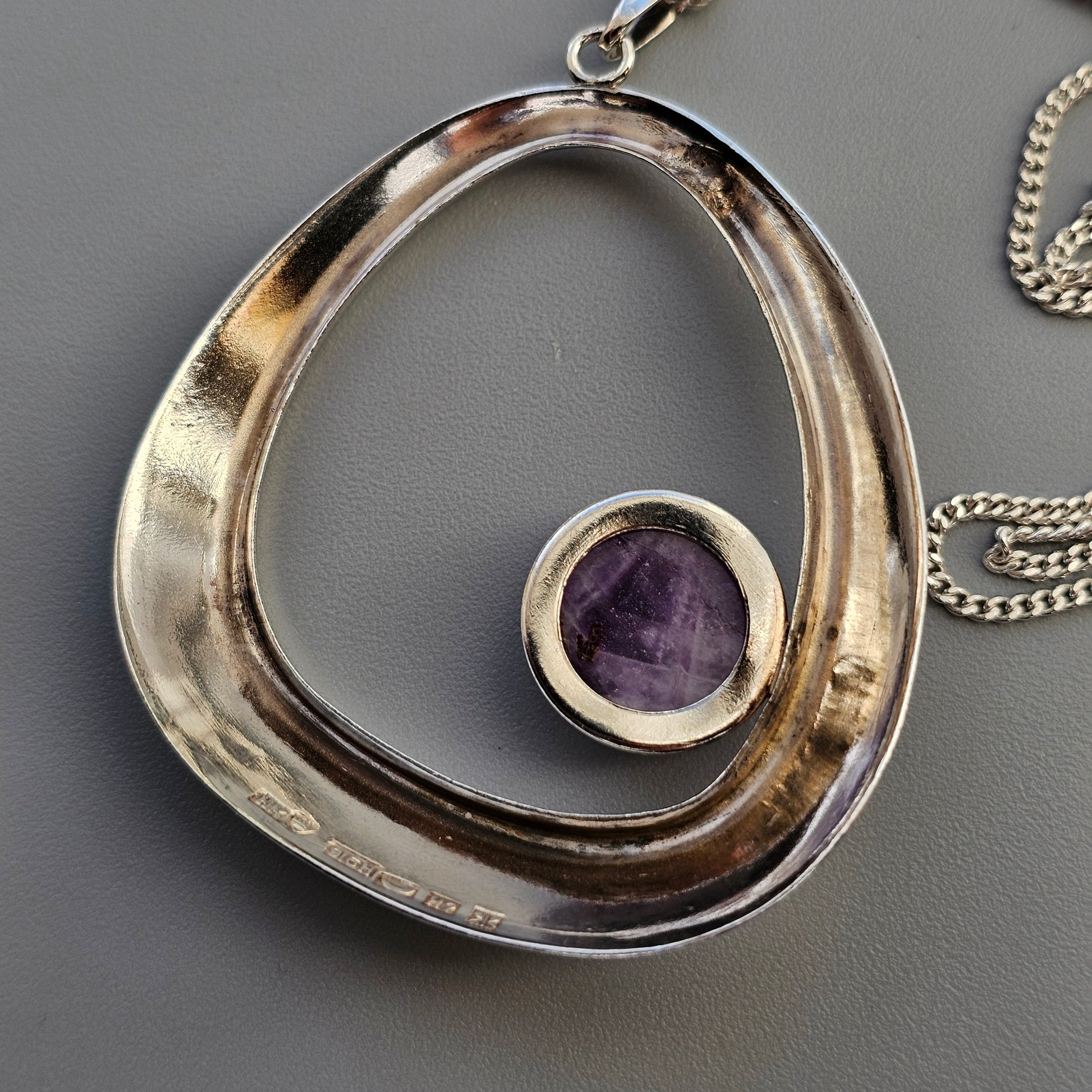 1960s Finnish Modernist Silver and Amethyst Necklace by Kaunis Koru, Heikki Kaksonen - 1961