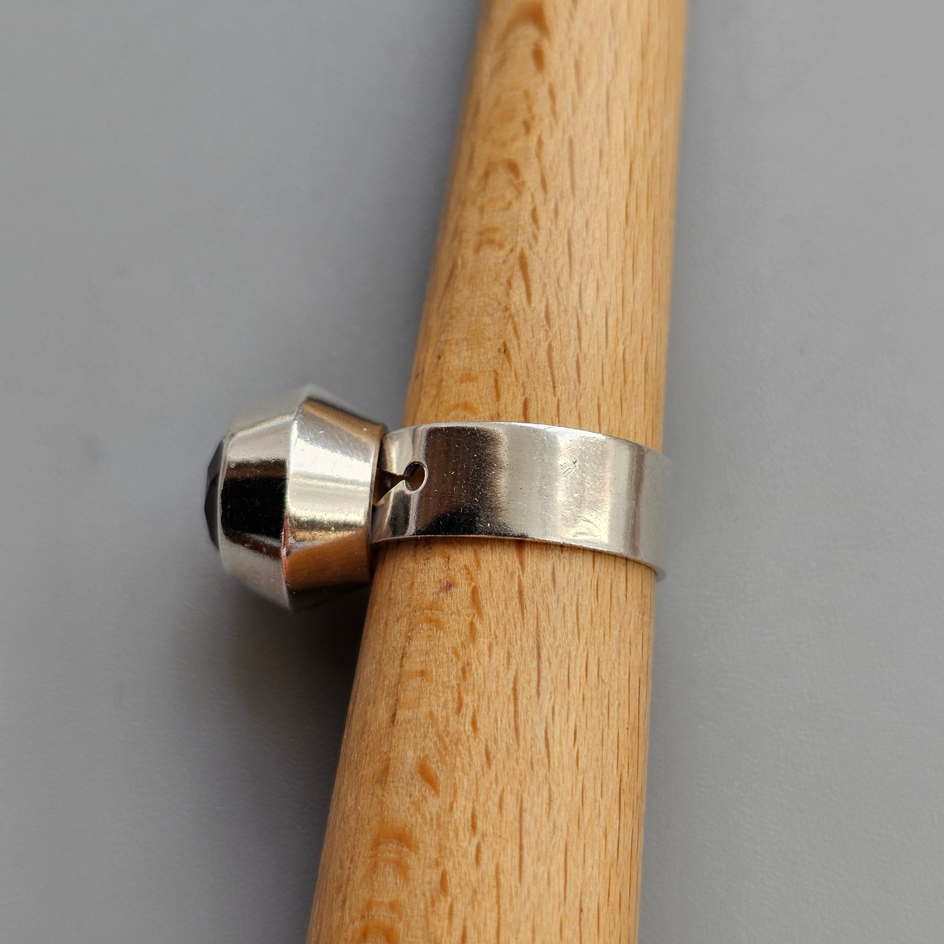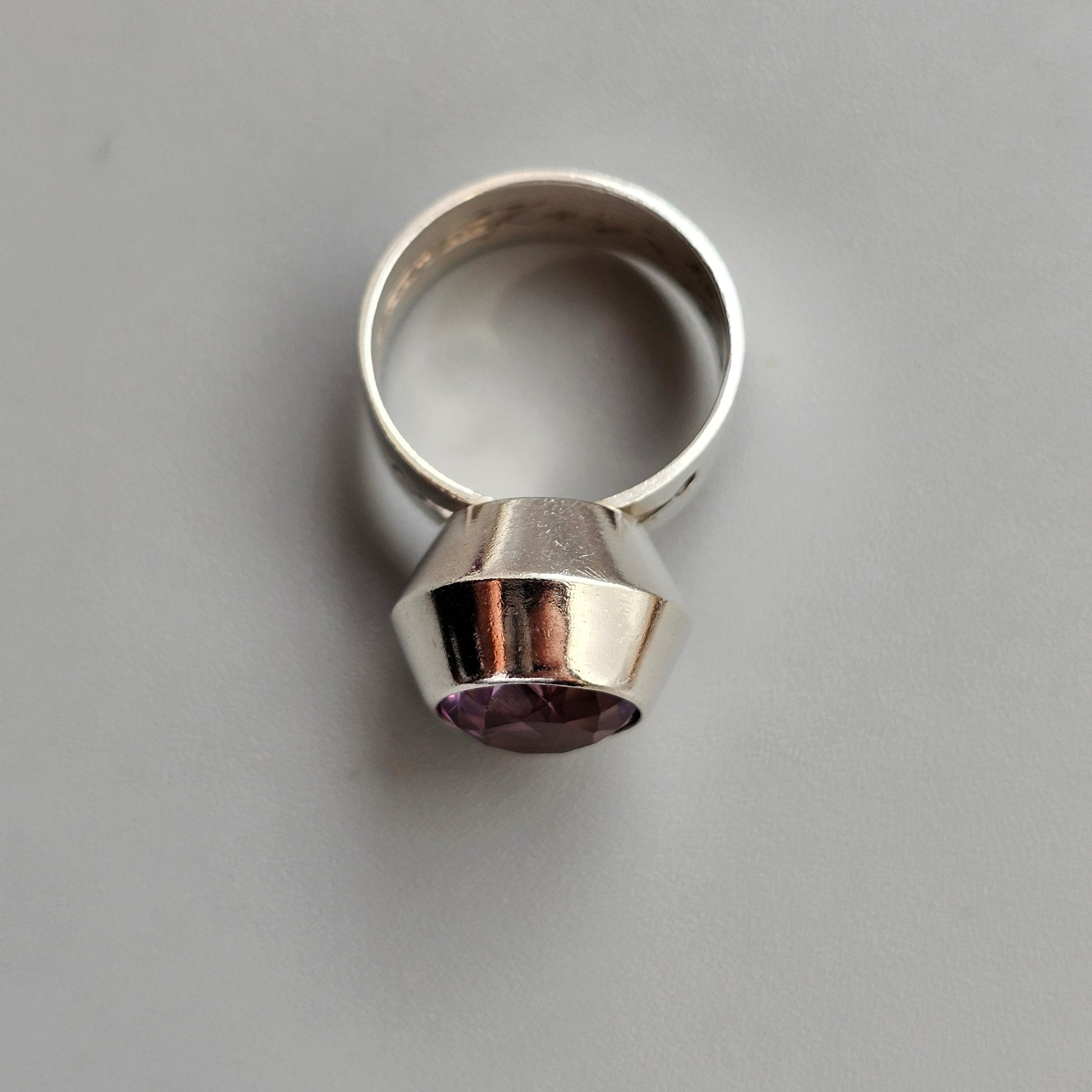 1960s Finnish Modernist Silver Ring with Amethyst — Tuomo Rissanen - UK Ring Size N 1/2- US Ring Size 7- 1967