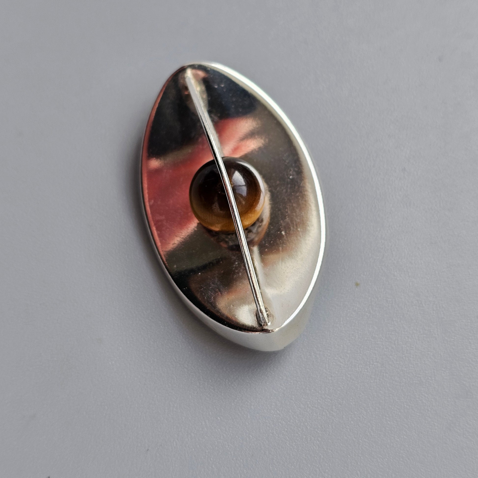 1960s Finnish Modernist Silver & Tiger’s Eye Brooch by Kultaseppä Salovaara 1962