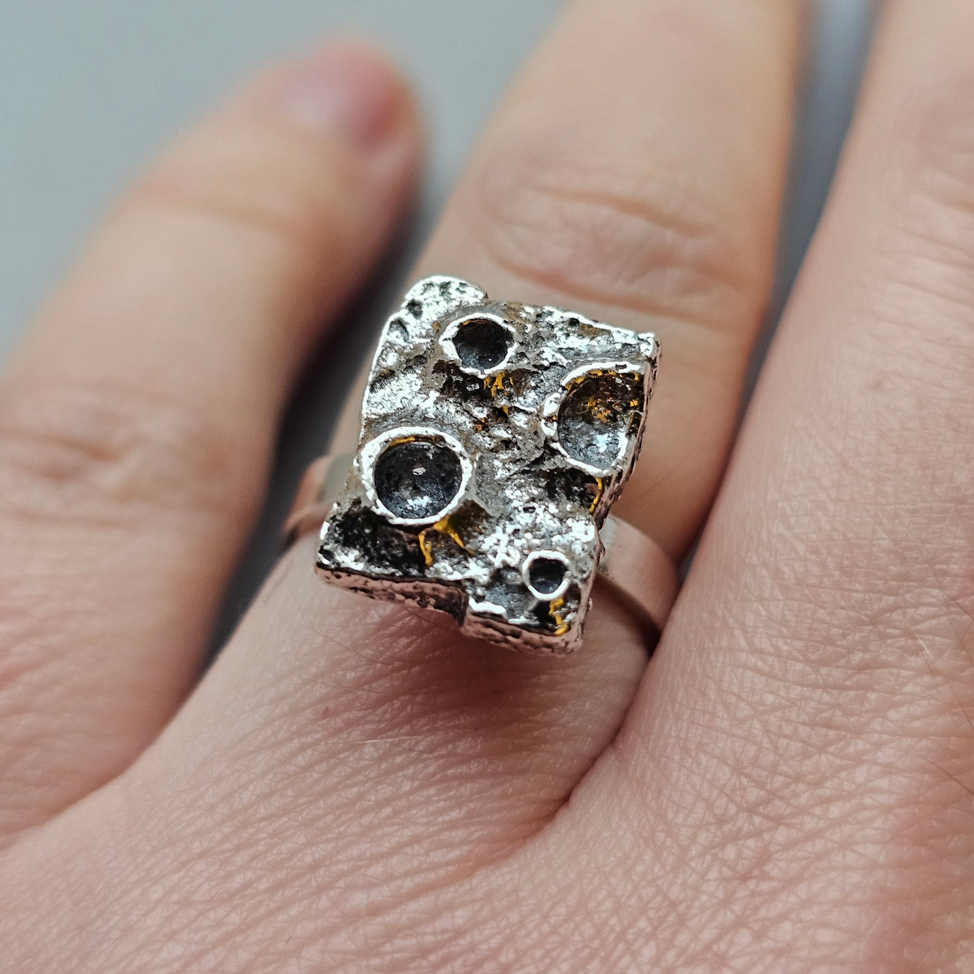 A striking vintage Finnish modernist silver ring by designer Martti Viikinniemi in 1970s