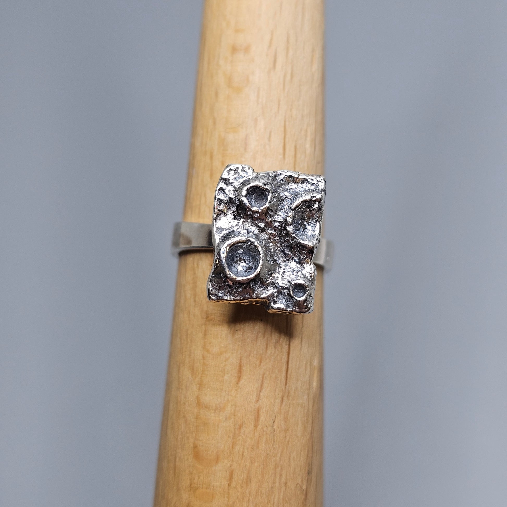 1970 Finnish Modernist Lunar-Texture Silver Ring — Martti Viikinniemi - UK Ring Size K - US Ring Size 5.25