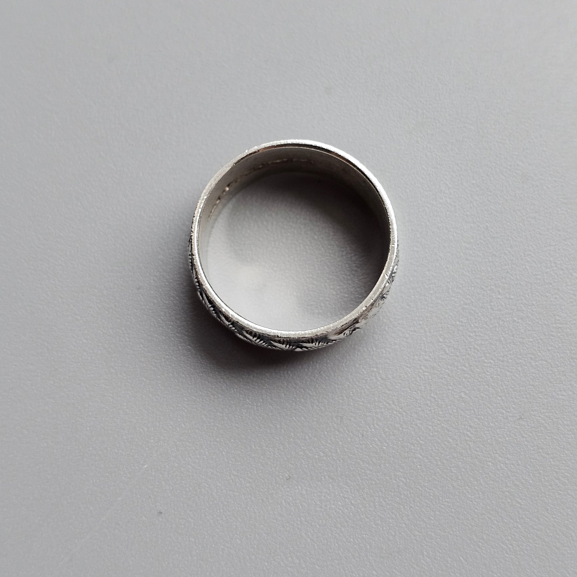 1970s Finnish Silver Band Ring with Raised Spruce Branch Motif - UK Ring Size O - US Ring Size 7.25 - 1978