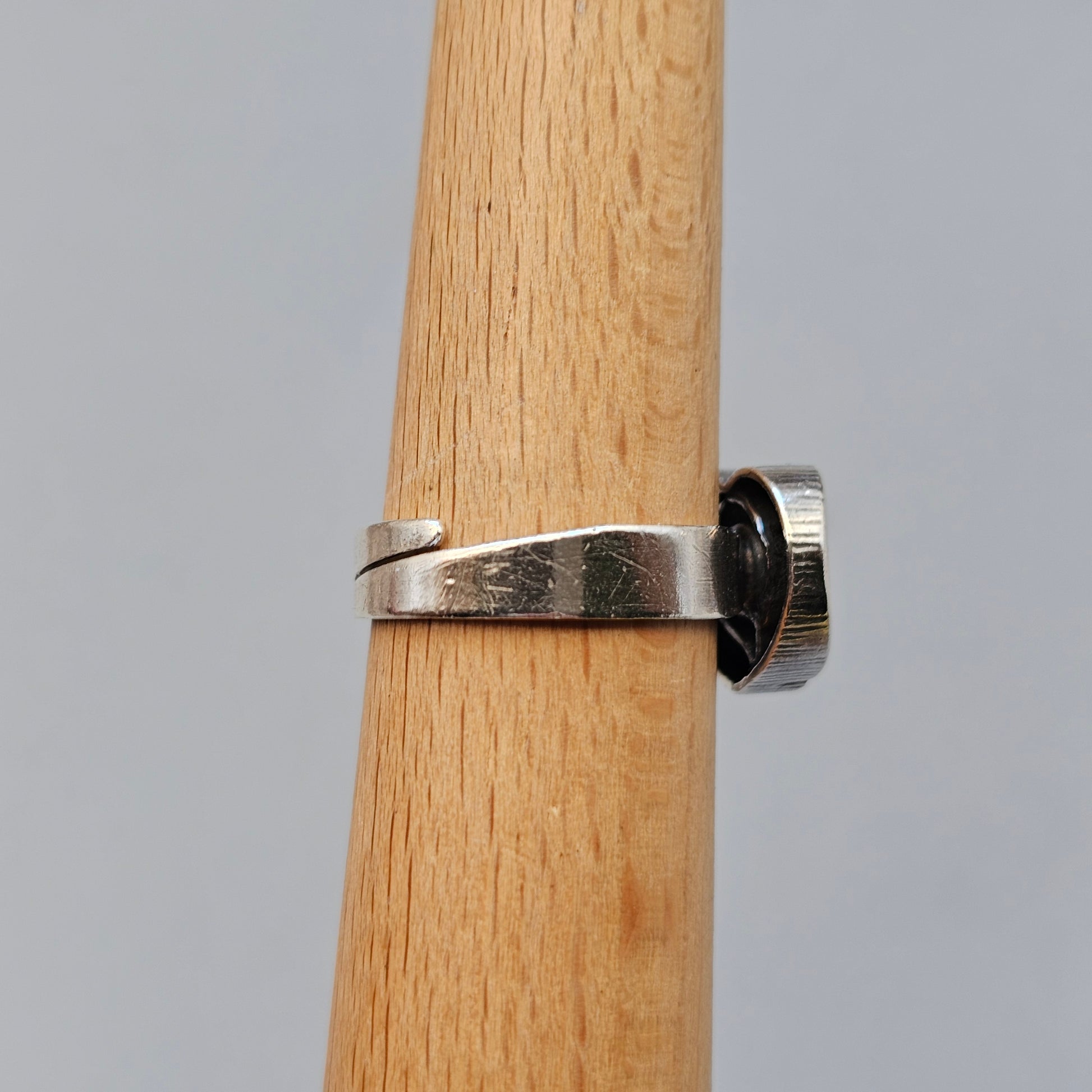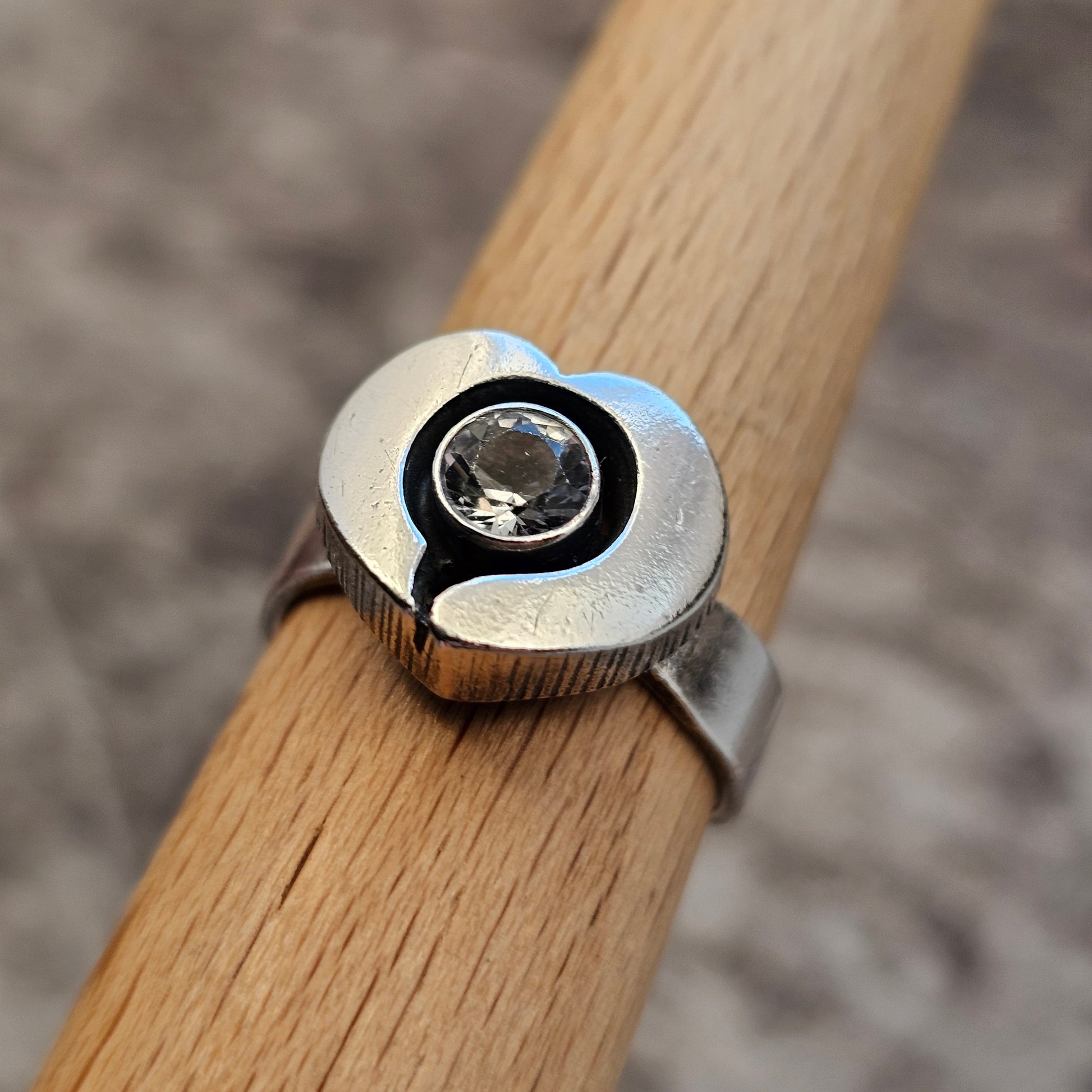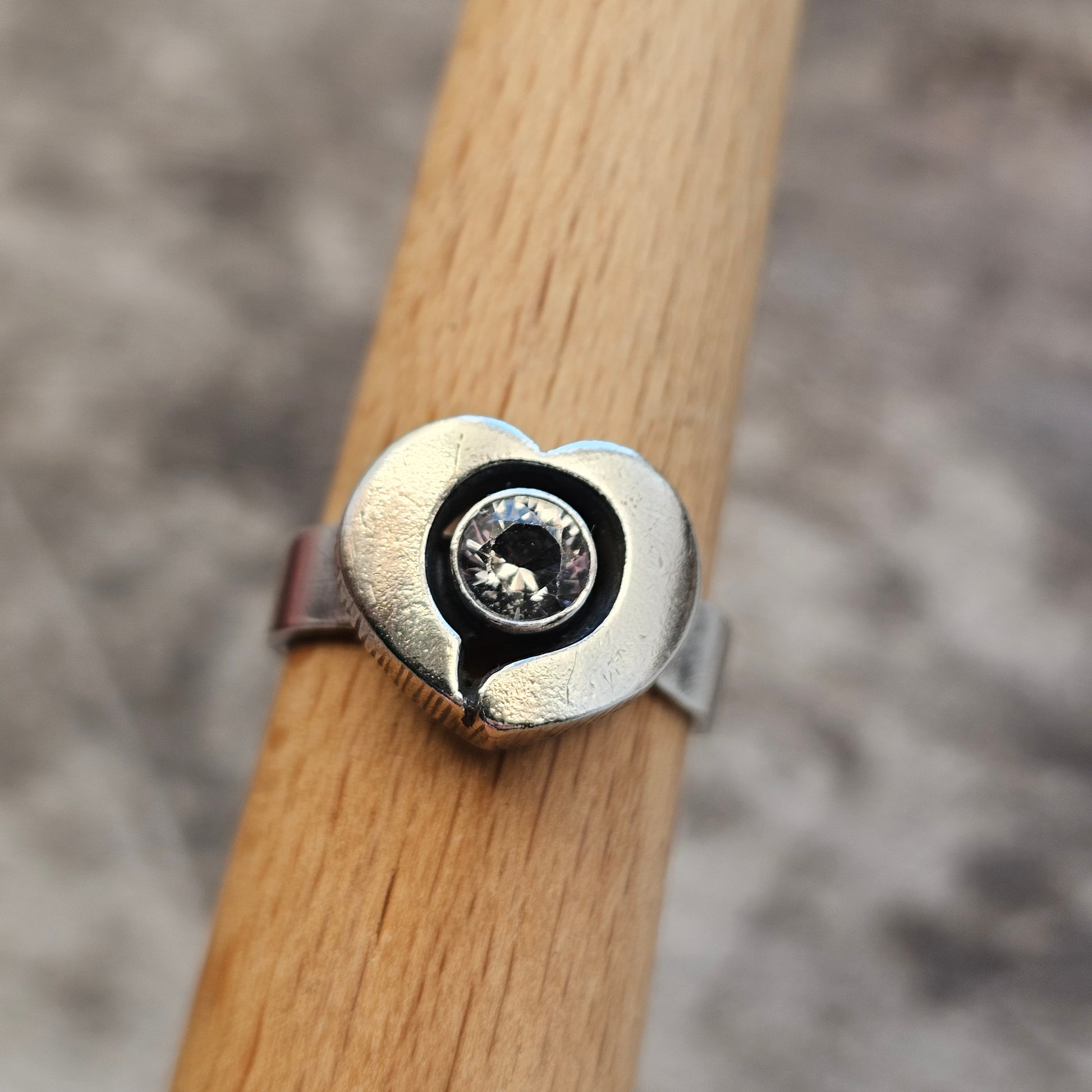Beautiful vintage Finnish silver ring by Finnfeelings. This striking design features a faceted rock crystal set within an heart shaped frame.
