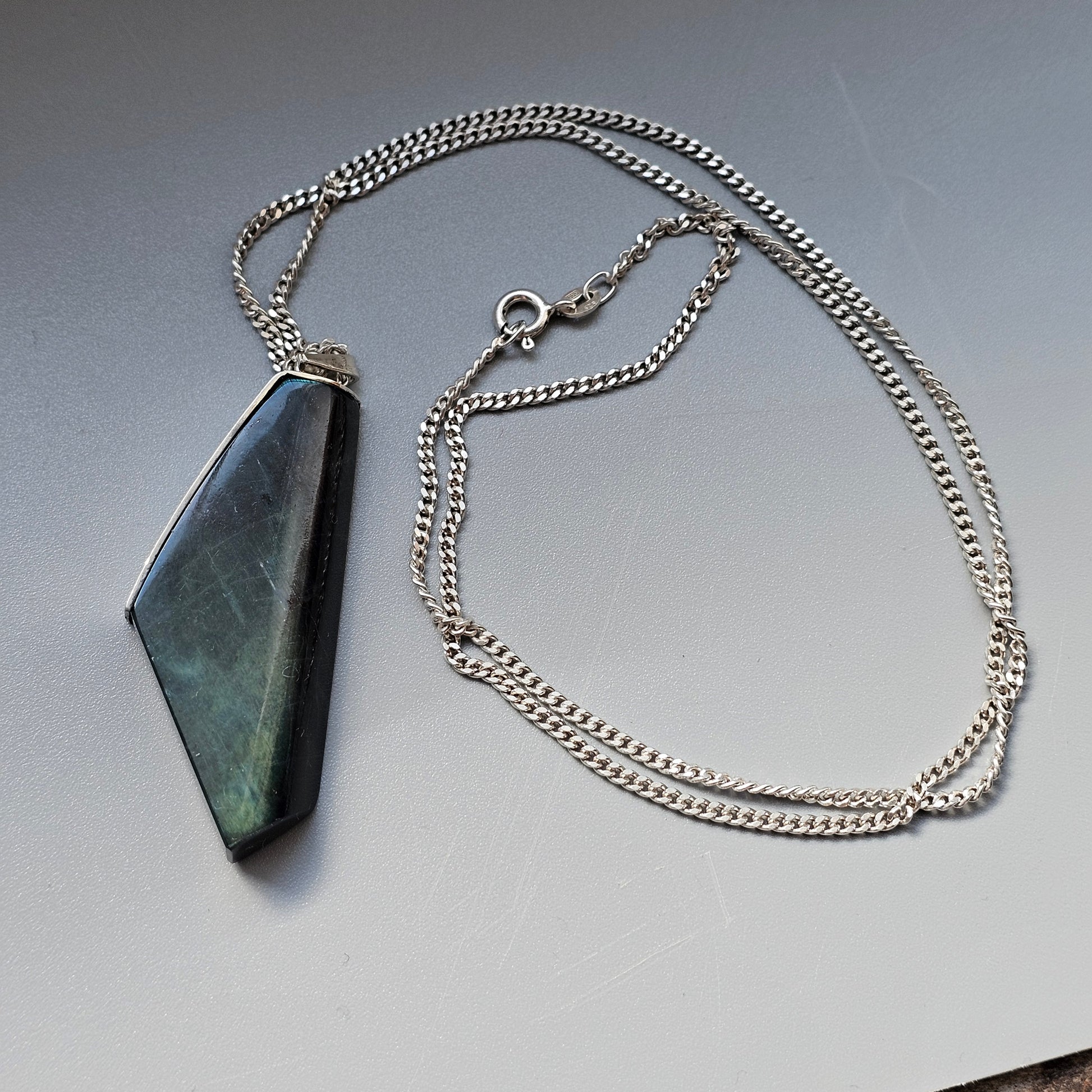 Contemporary Finnish Silver & Spectrolite Statement Necklace Pendant