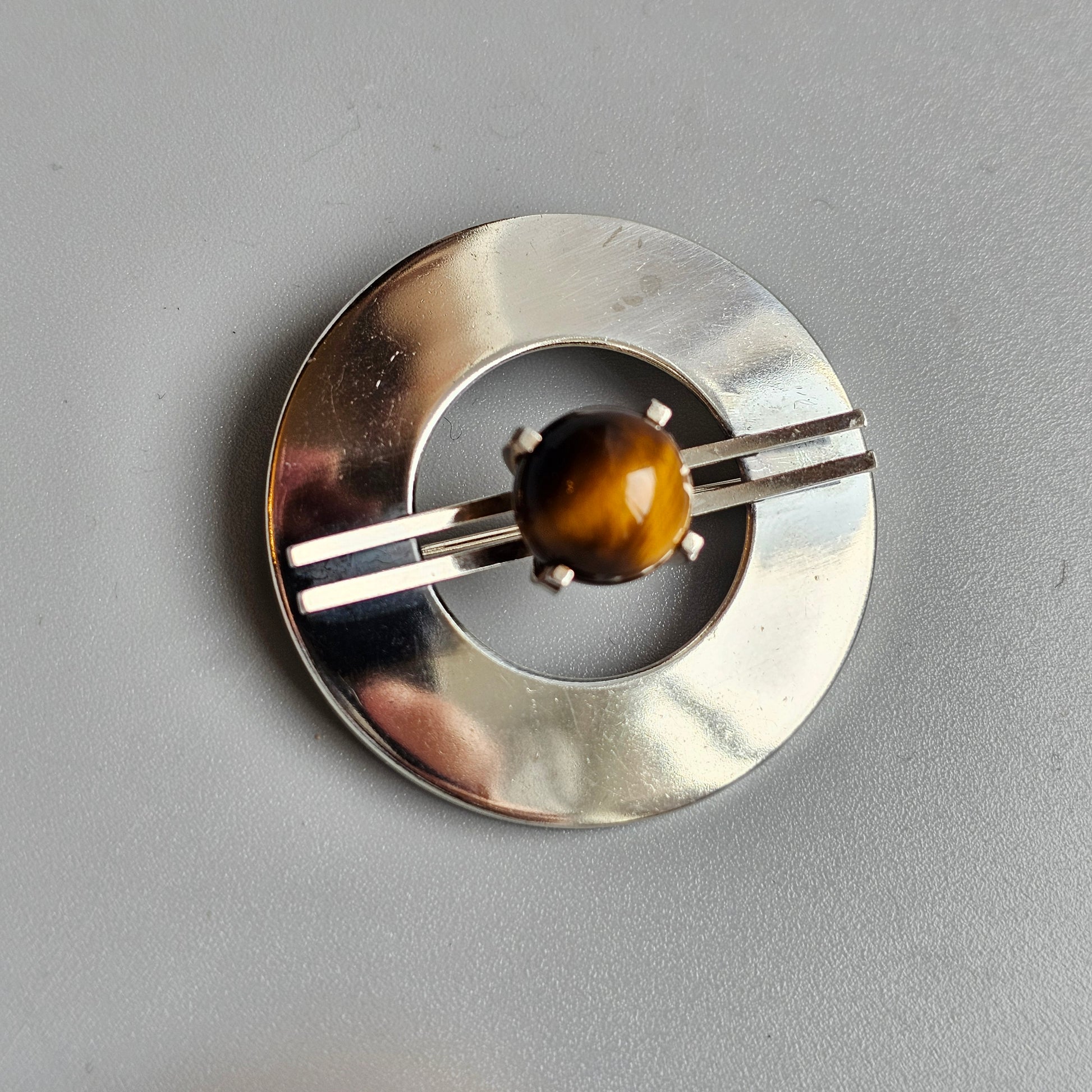 Elis Kauppi Kupittaan Kulta Mid-Century Finnish Silver & Tiger’s Eye Brooch — Modernist Jewellery 1965