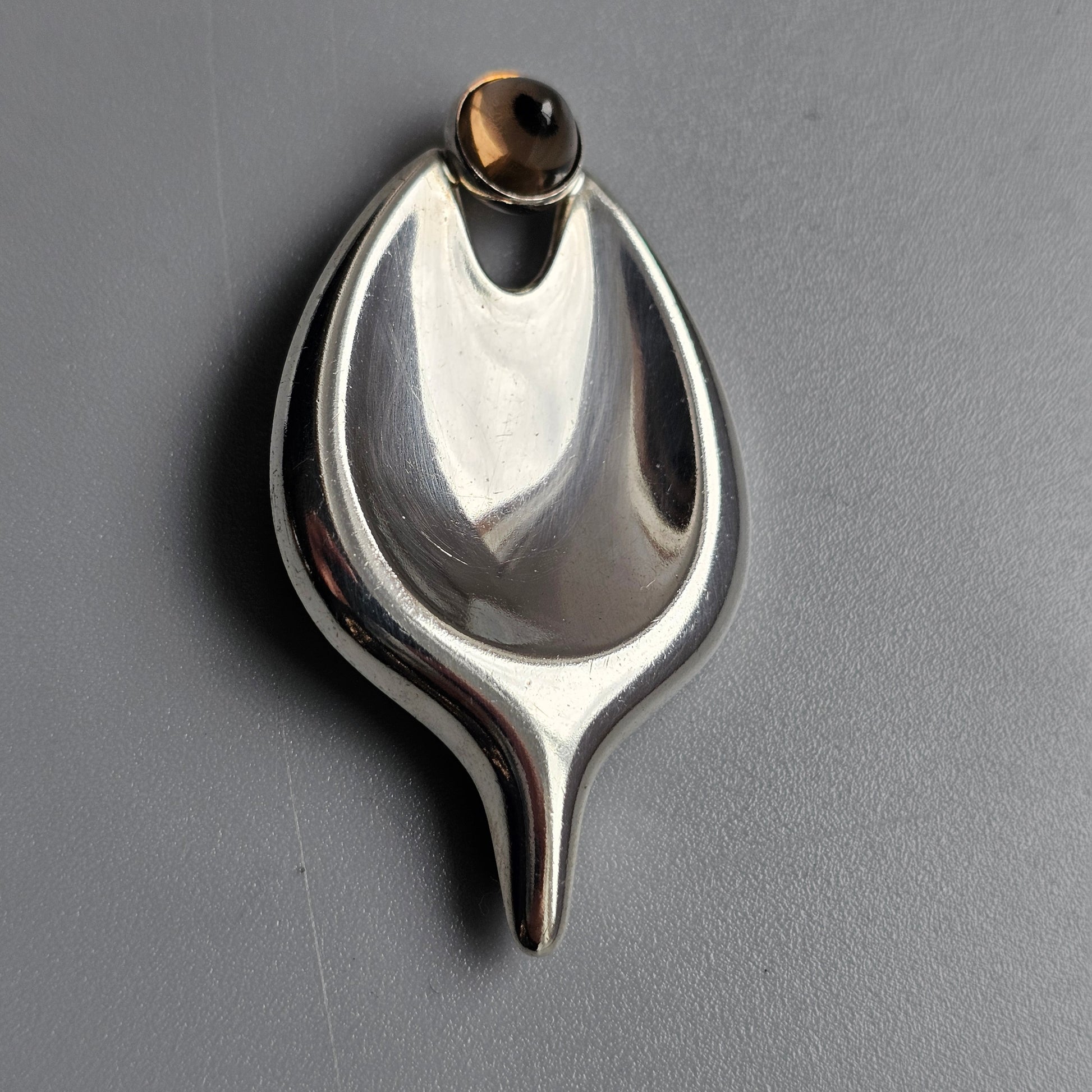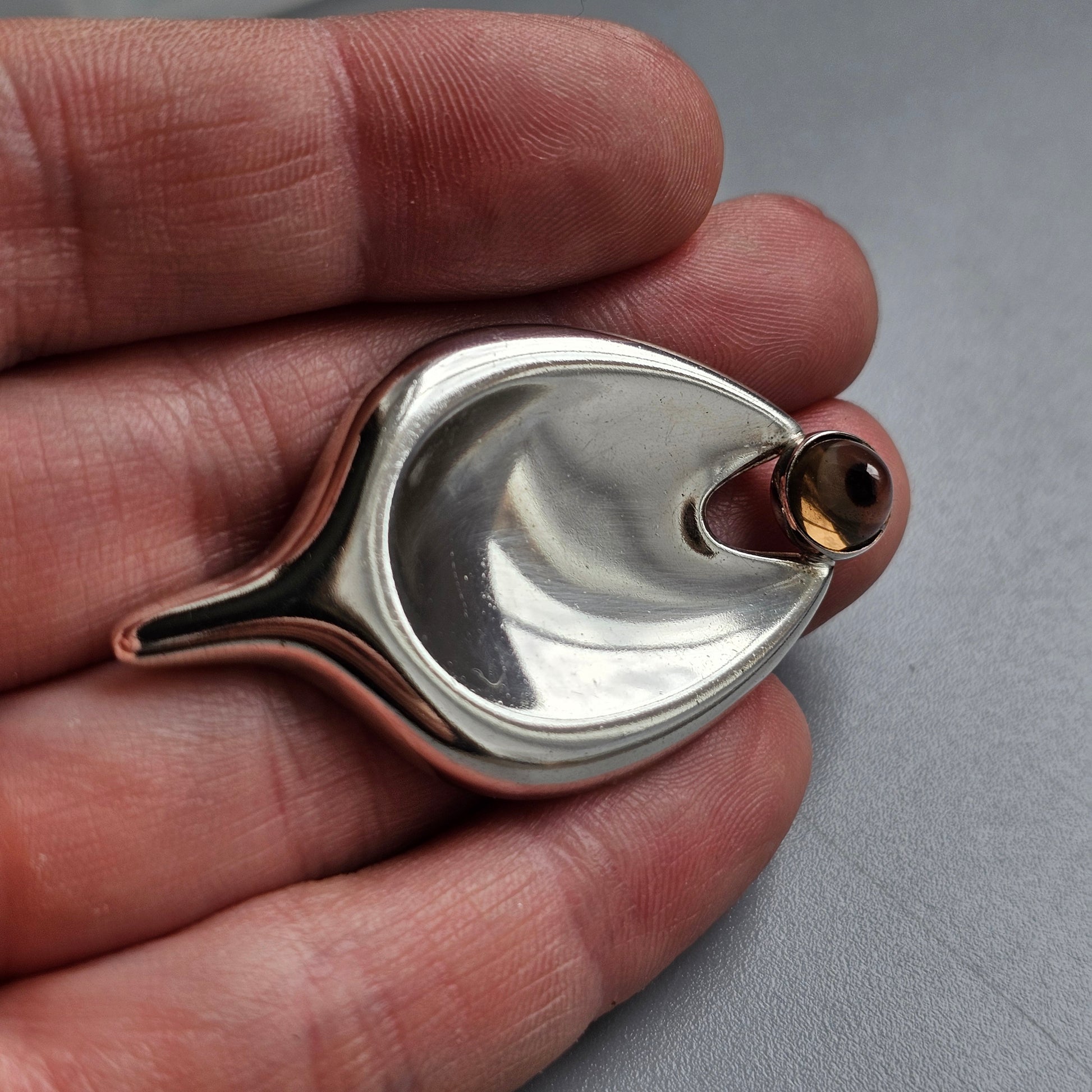 Finnish 1960s Modernist Silver & Smoky Quartz Brooch by Kupittaan Kulta Elis Kauppi 1960