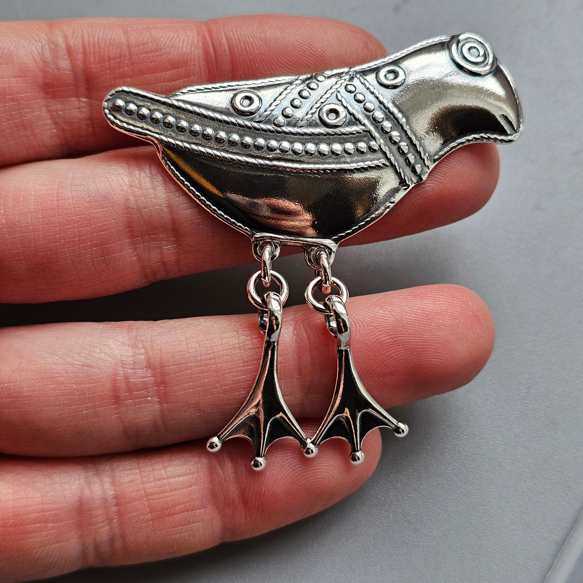 Finnish Kalevala Koru 11th Century Middle Ages Style Bird of Hattula Sterling Silver Brooch 1996