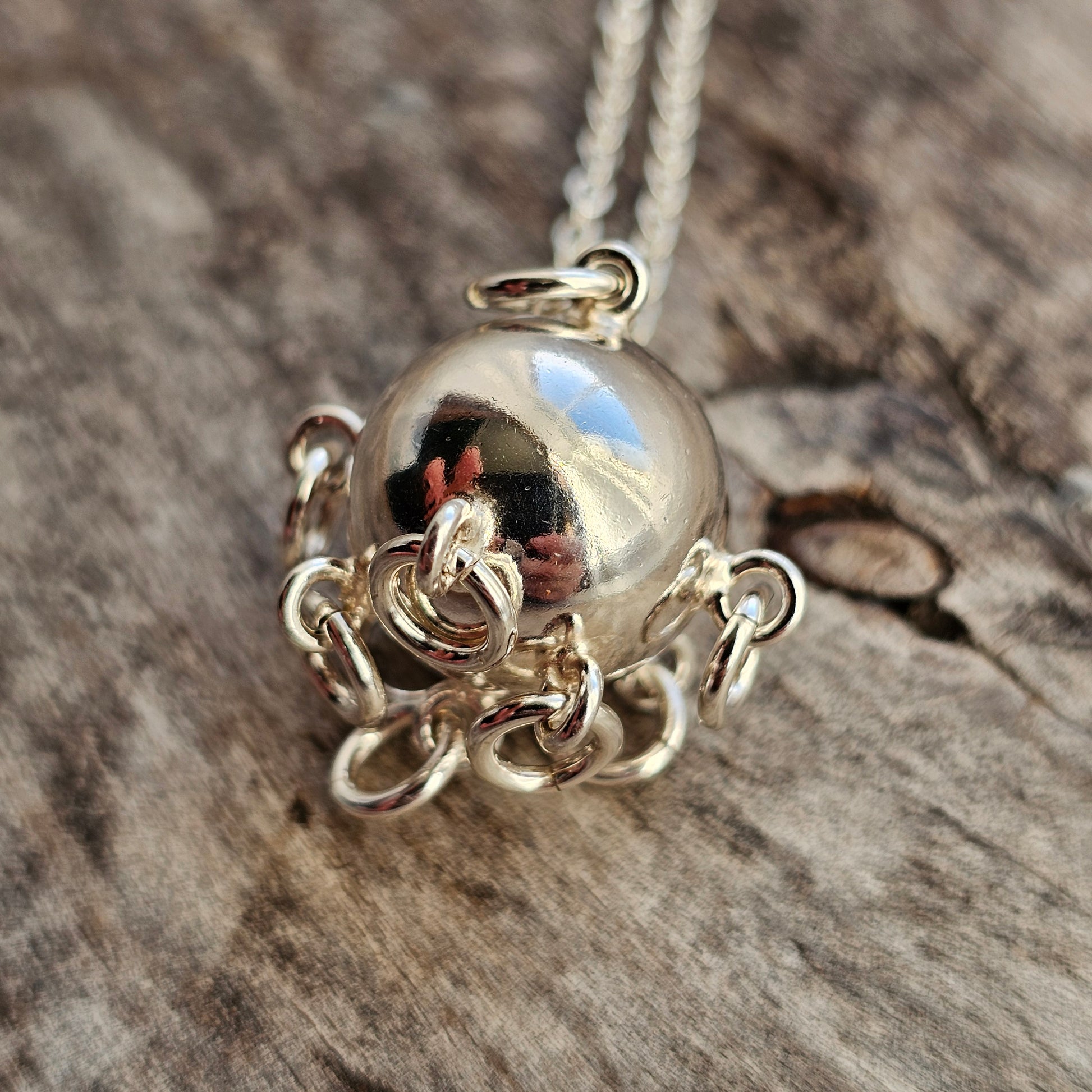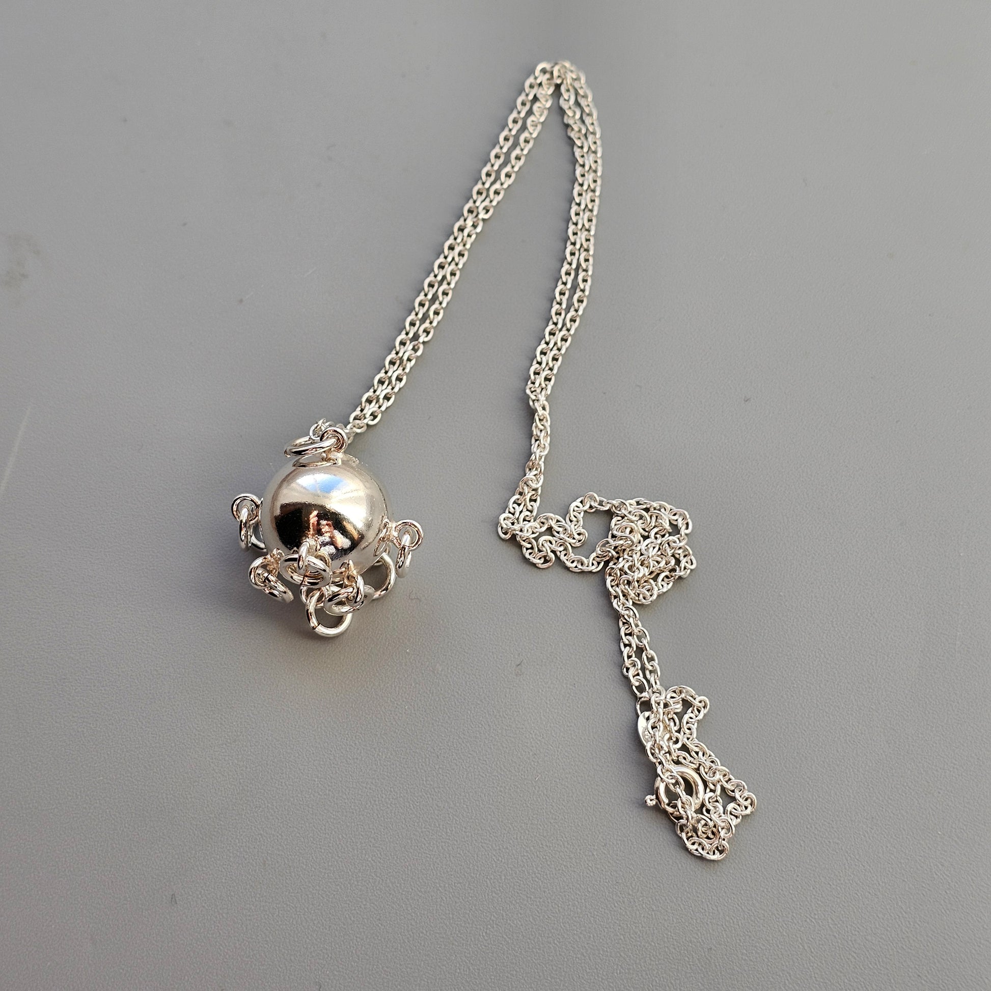 Finnish Silver Komsiopallo / Cradle Ball Necklace Pendant by Taiga Koru