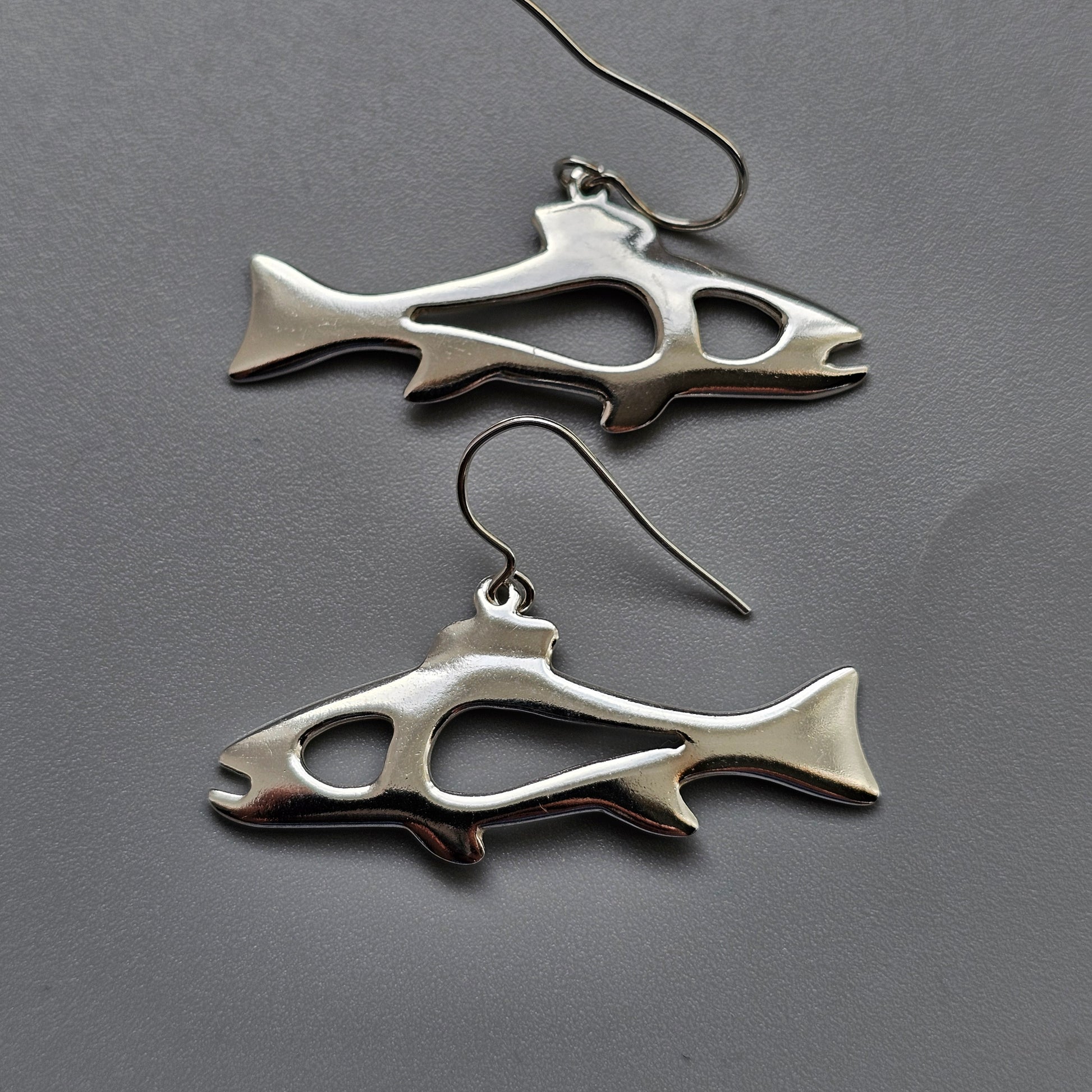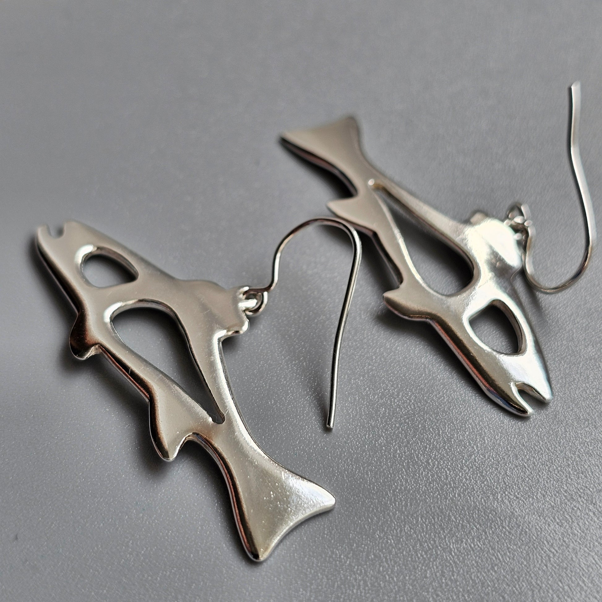 Finnish Sterling Silver Fish Drop Earrings by Inarin Hopea