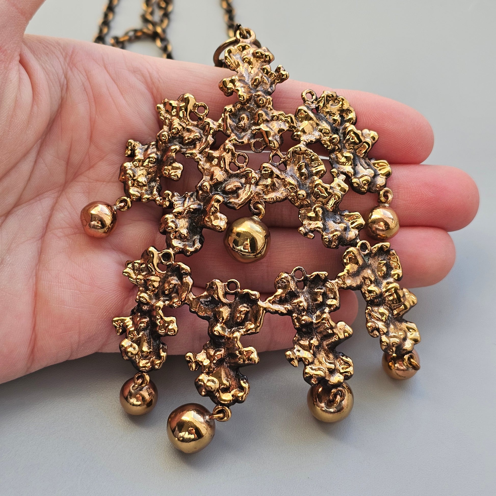 Large Pentti Sarpaneva 1970s Finnish Brutalist Bronze Necklace — Kaarna Bark Design