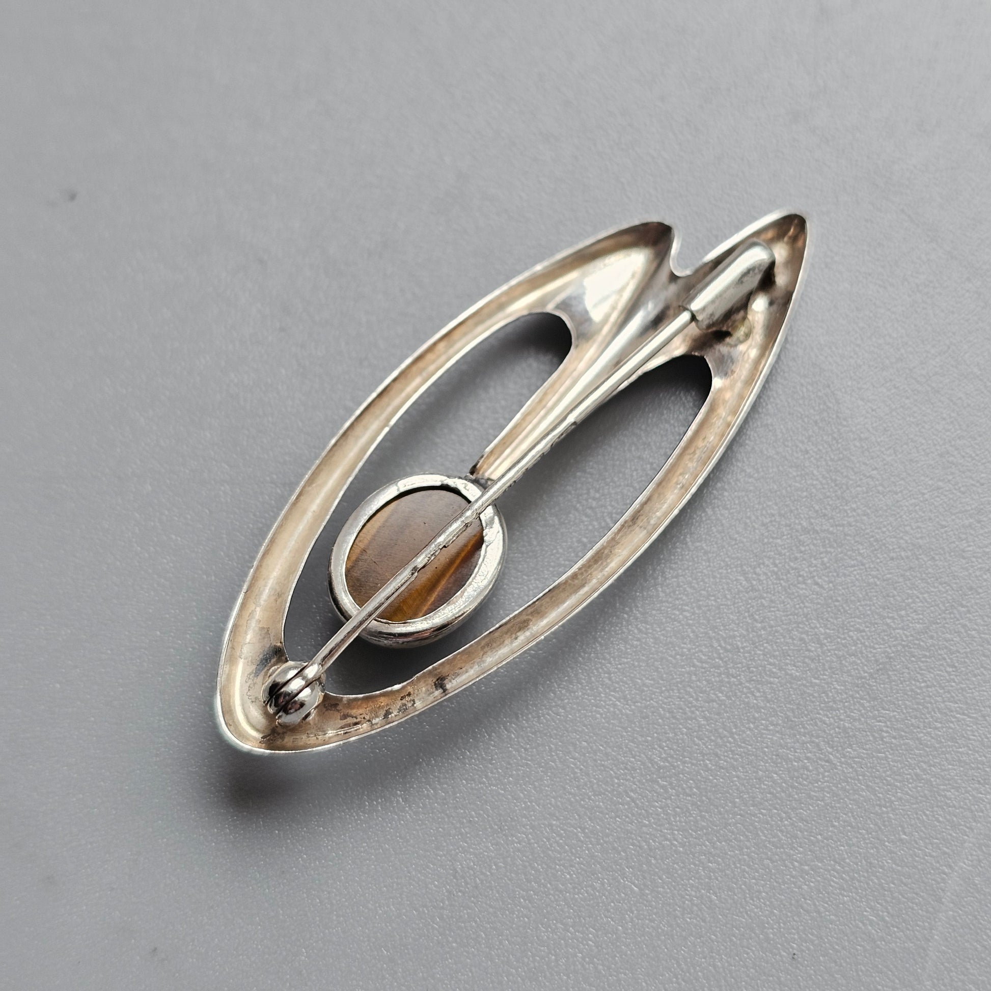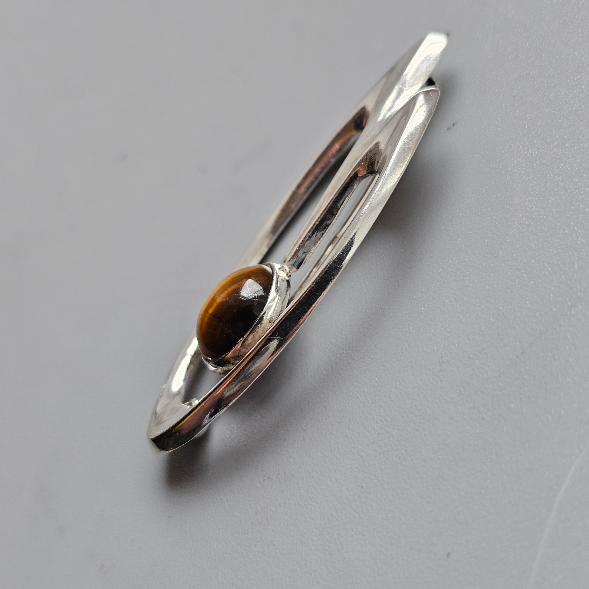 Stunning small vintage Finnish silver brooch, mid-century design with tiger’s eye. This elegant modernist piece showcases Scandinavian simplicity and warm gemstone colour.