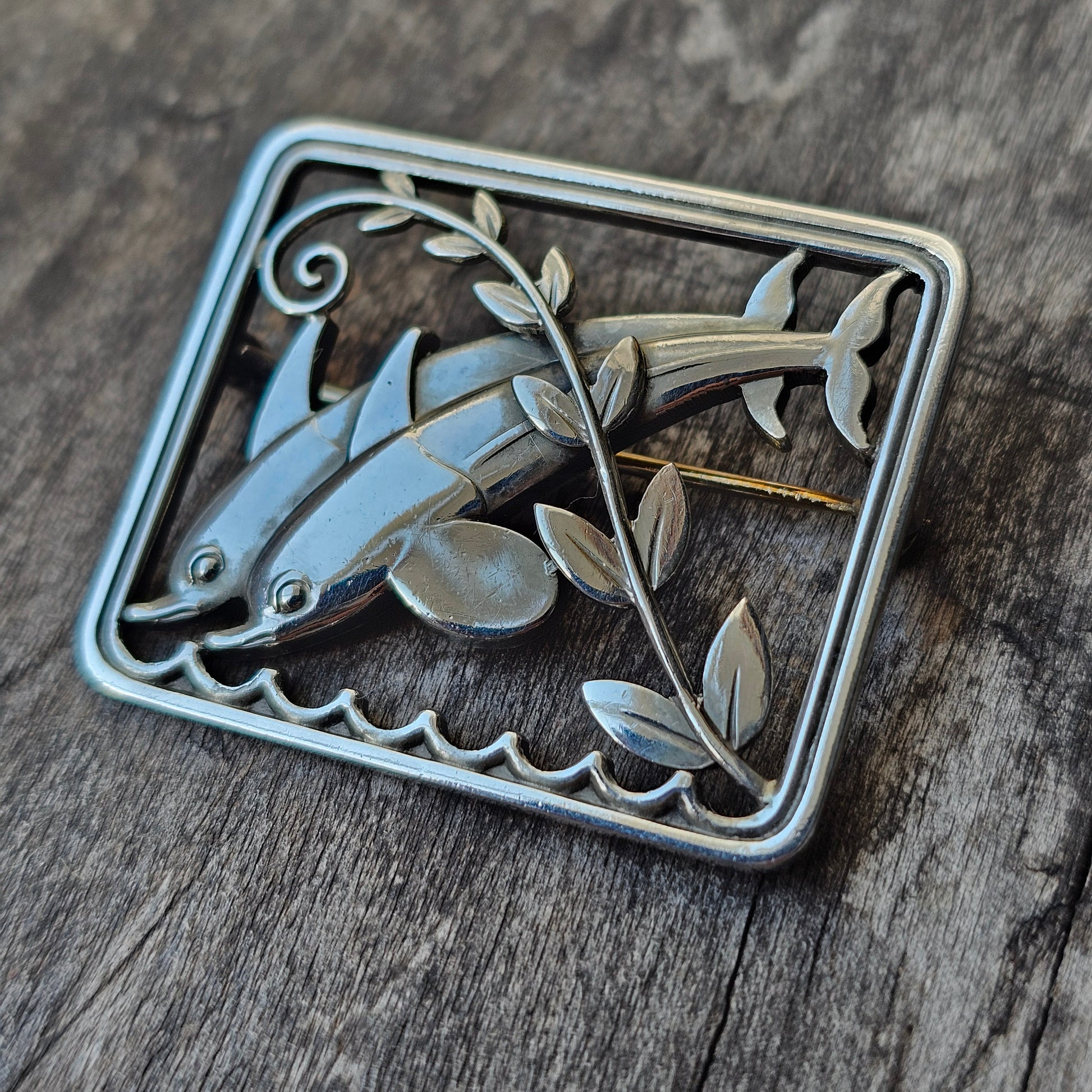 Vintage 1950s Georg Jensen Sterling Silver Brooch 251 Dolphins Arno Malinowski Design Denmark 1950