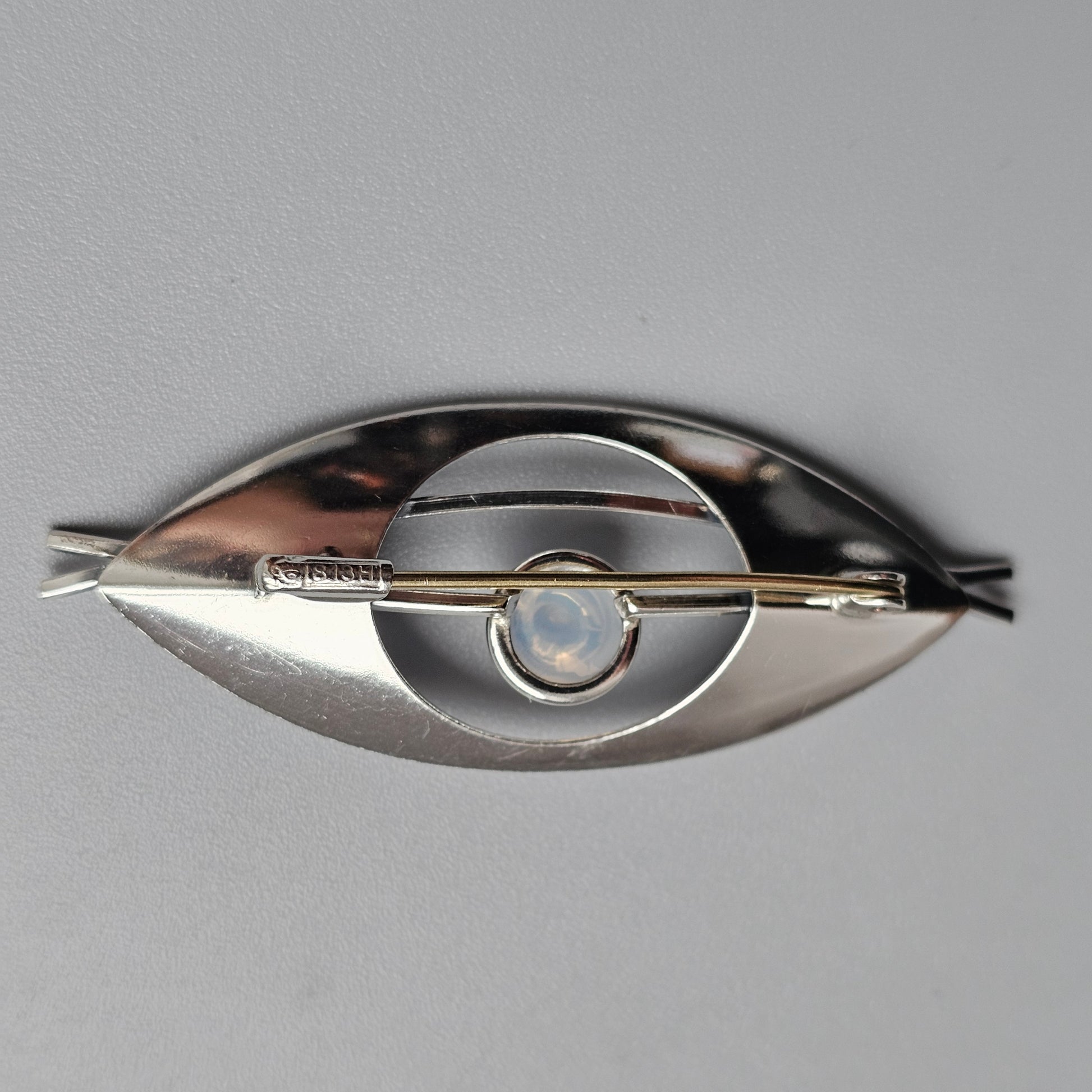 Vintage 1960s Finnish Modernist Silver Brooch with Chalcedony by Elis Kauppi, Kupittaan Kulta