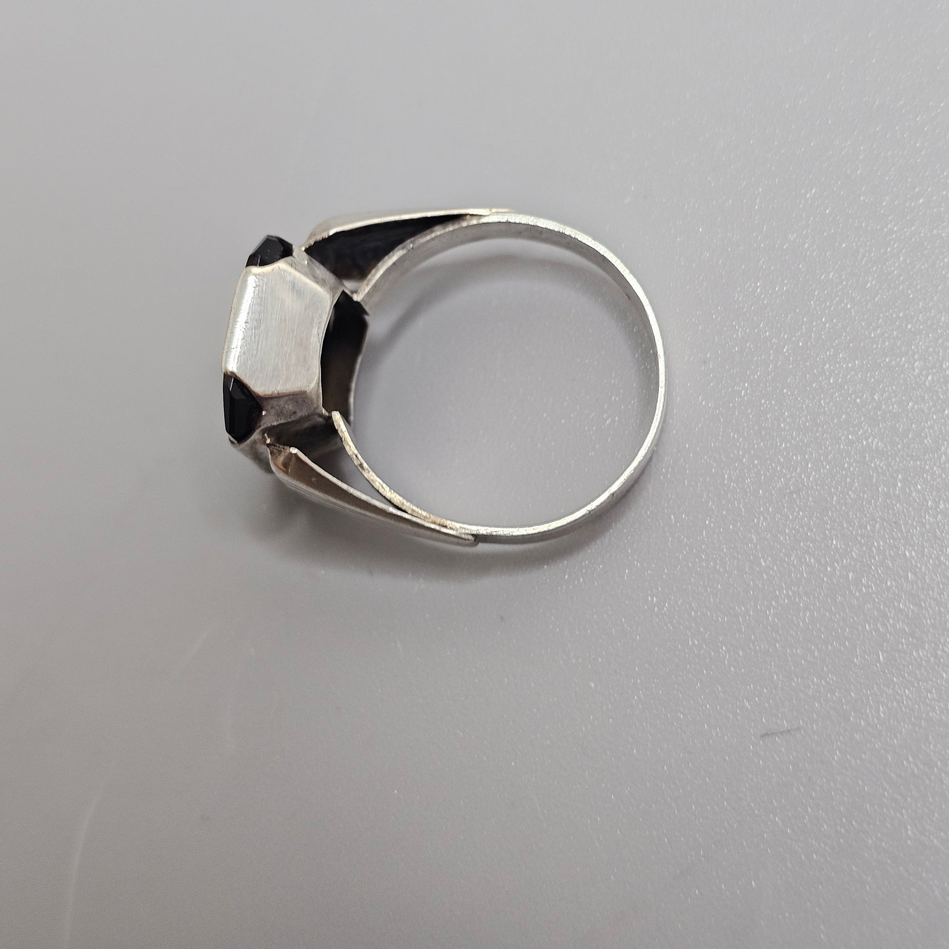 Striking vintage Finnish silver ring set with a polished onyx stone.