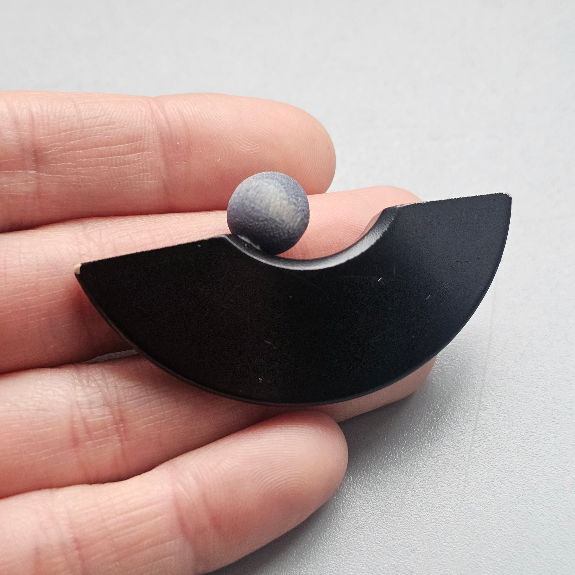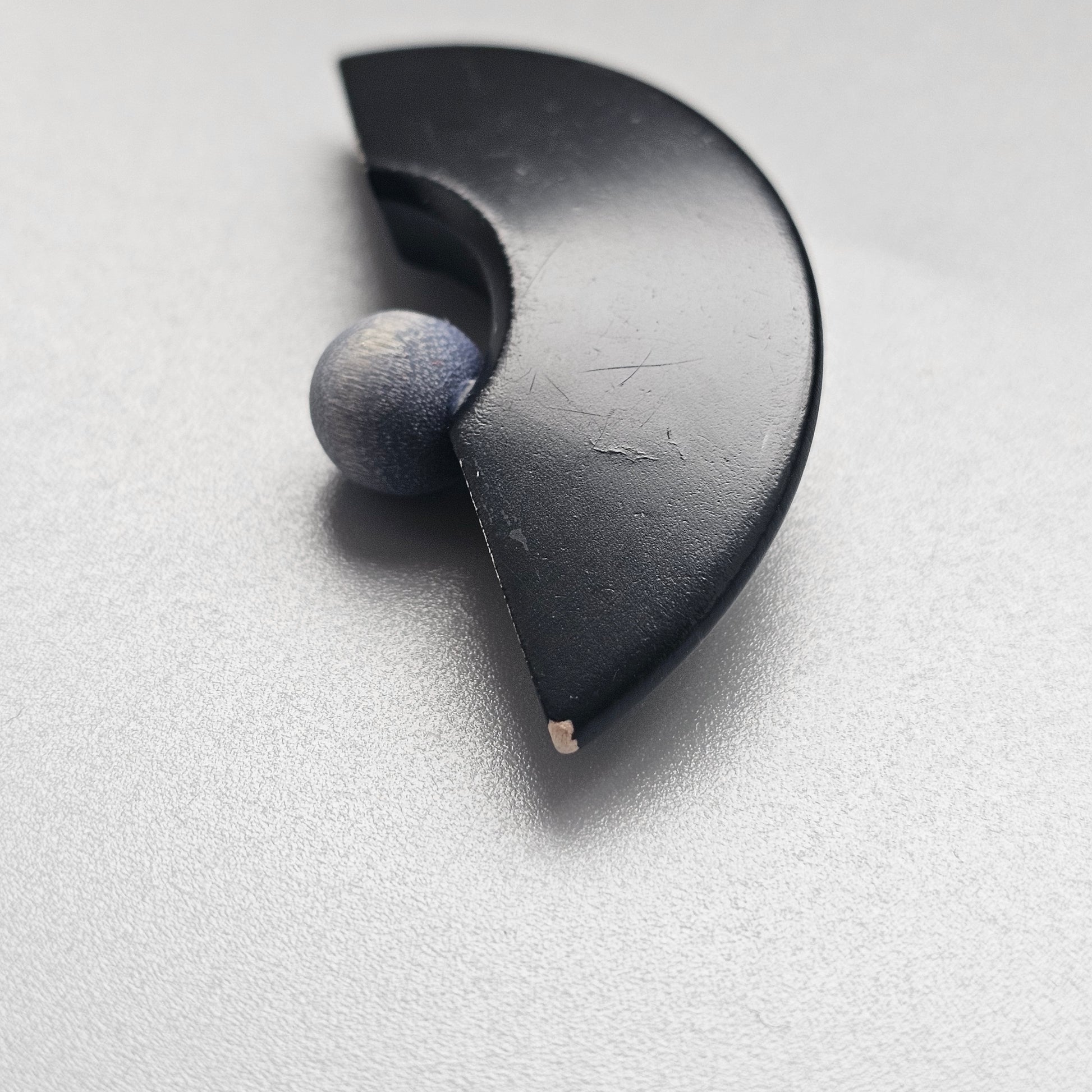 Vintage 1990s 1980s Aarikka Finland Black & Blue Wooden Brooch – Modernist Scandinavian Design