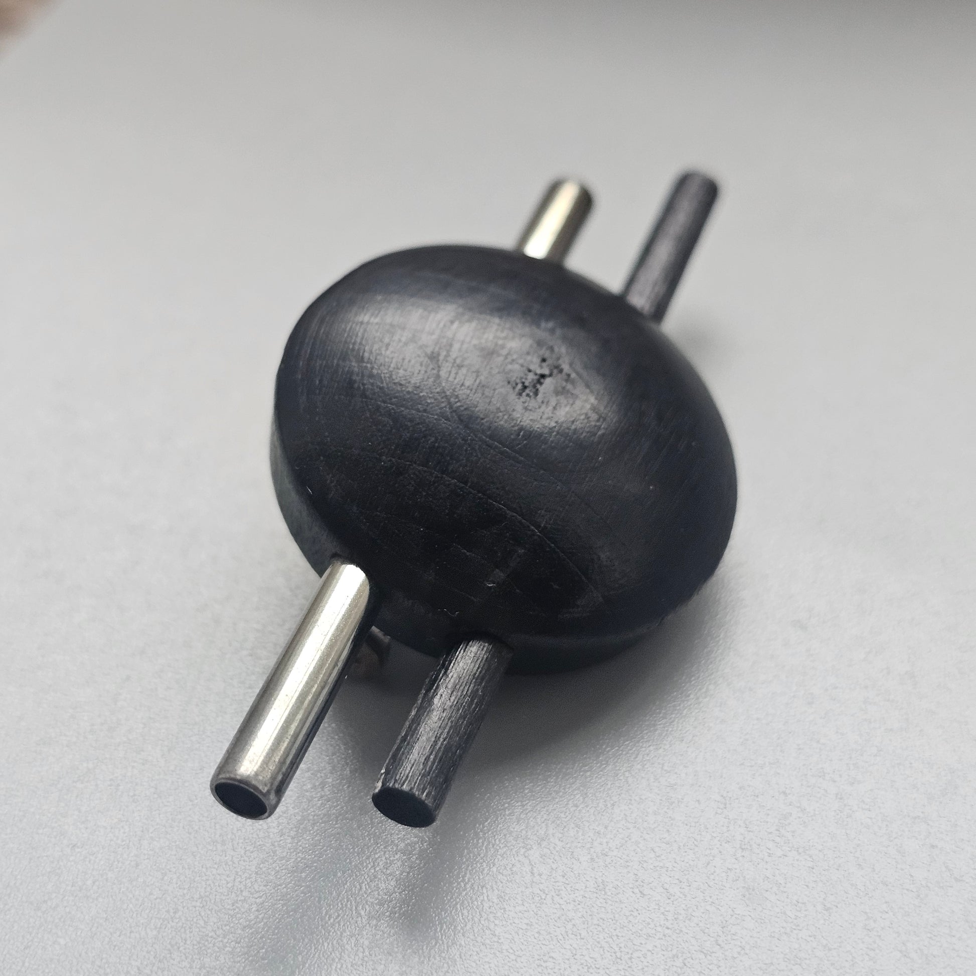 A black wooden brooch featuring a silver-toned bar accent, embodying the bold geometric aesthetic Scandinavian design.