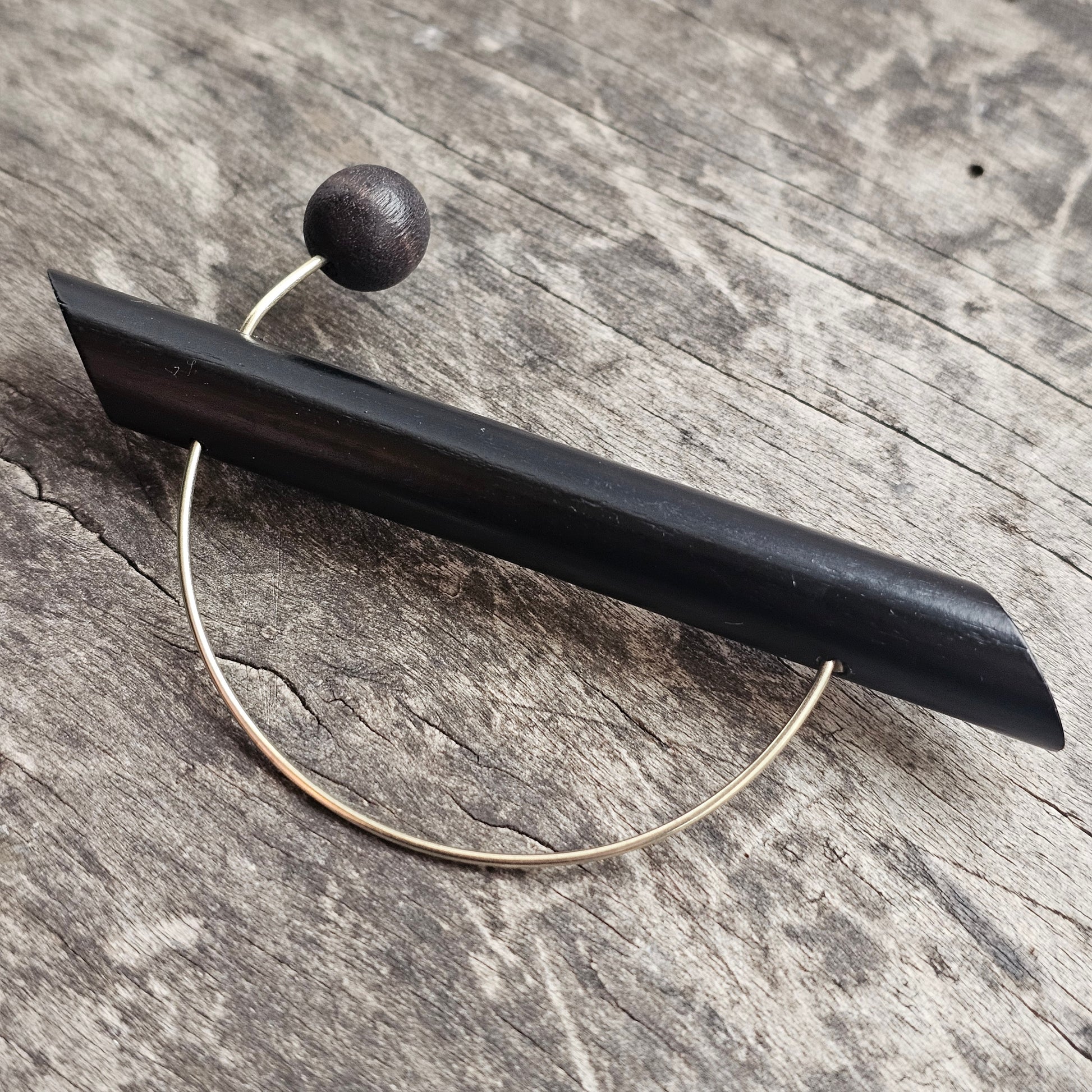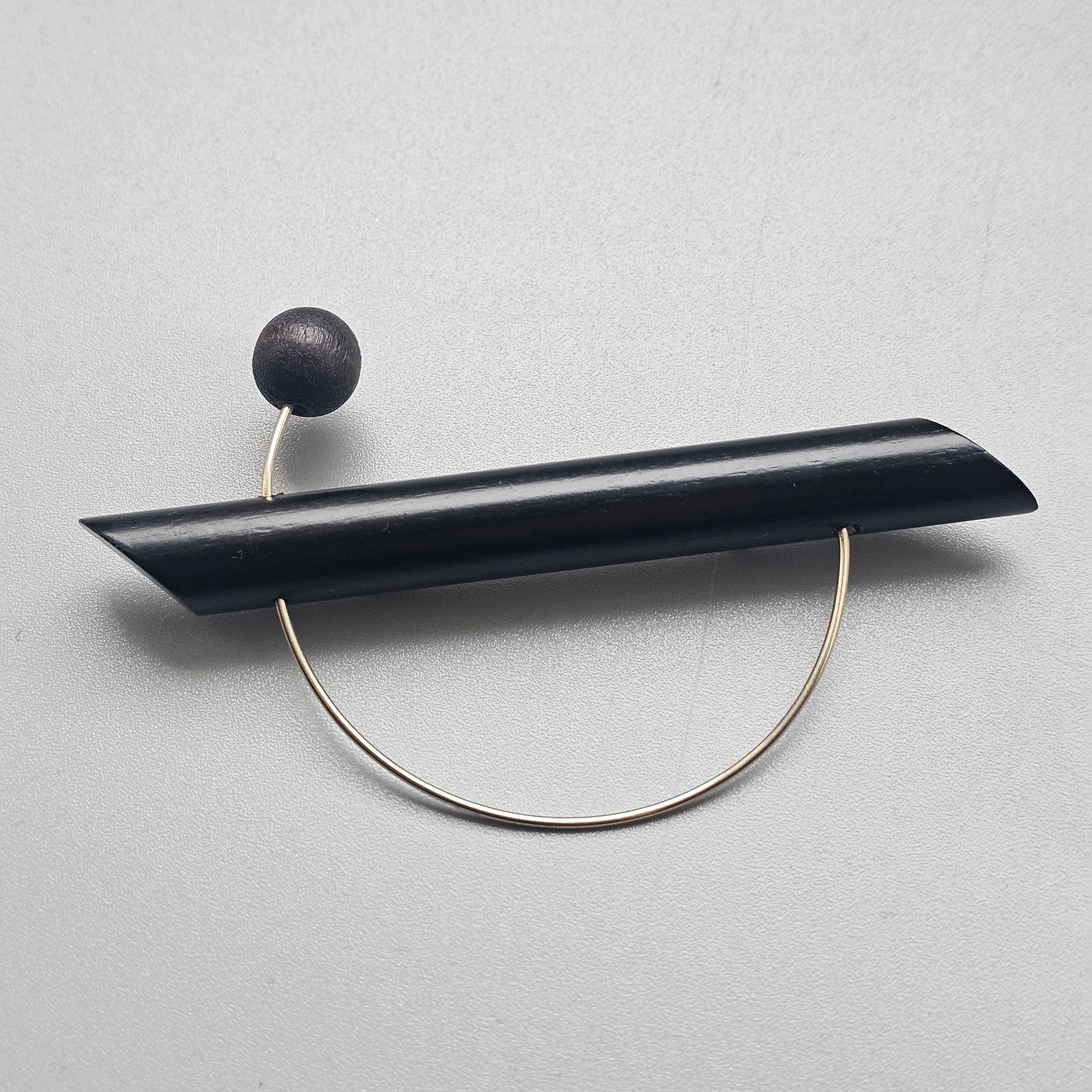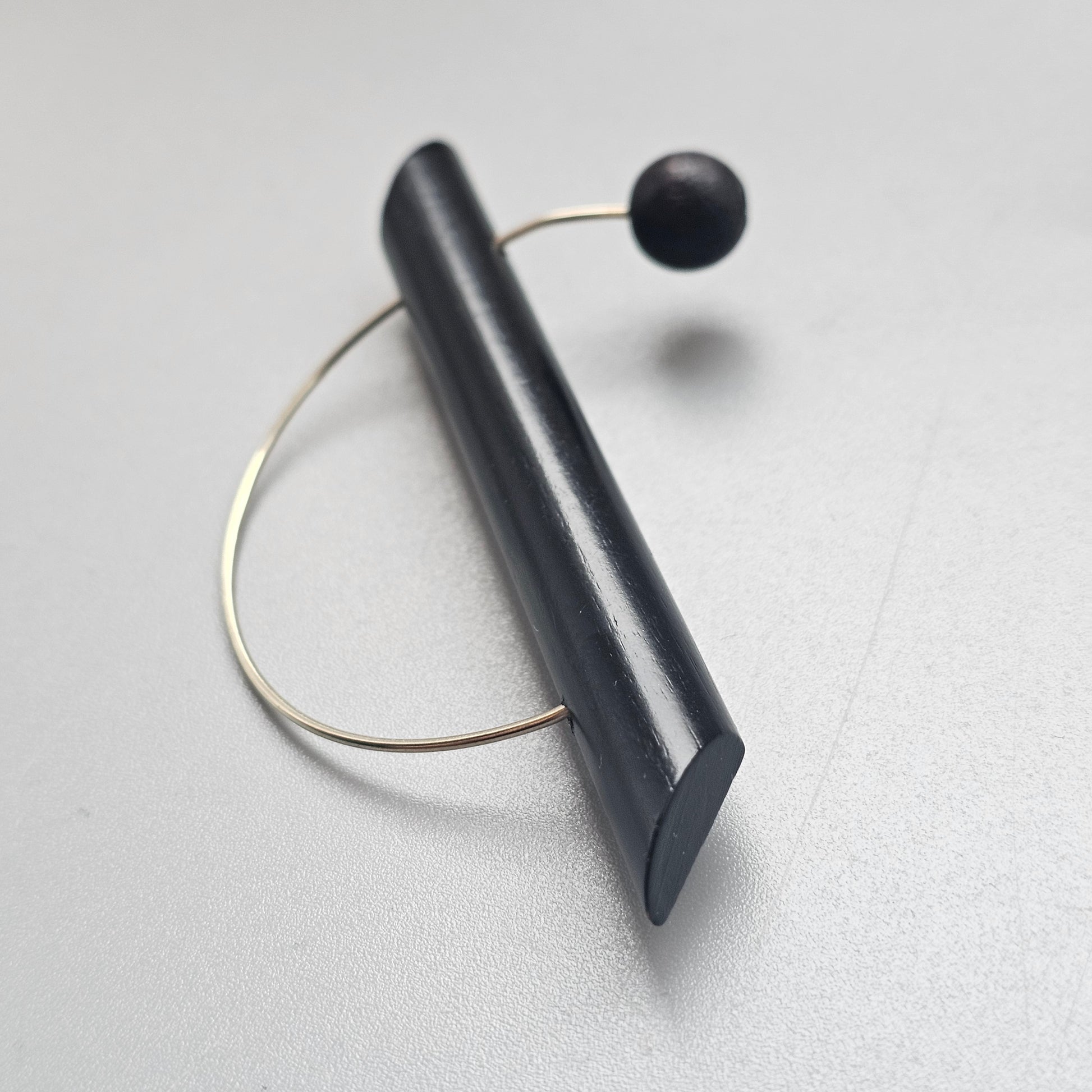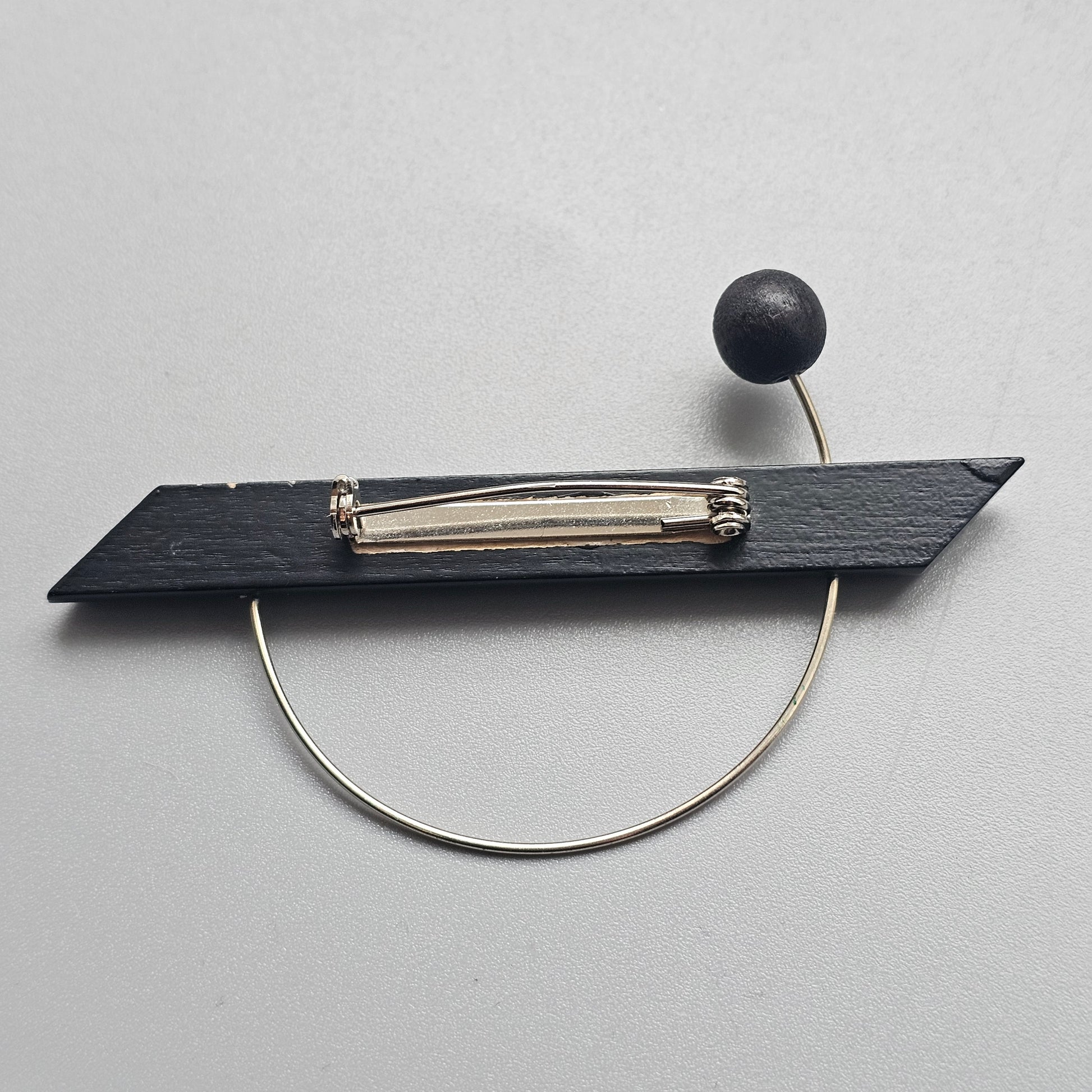 Vintage 1990s Aarikka Finland Black Wooden Brooch – UFO Modernist Scandinavian Design