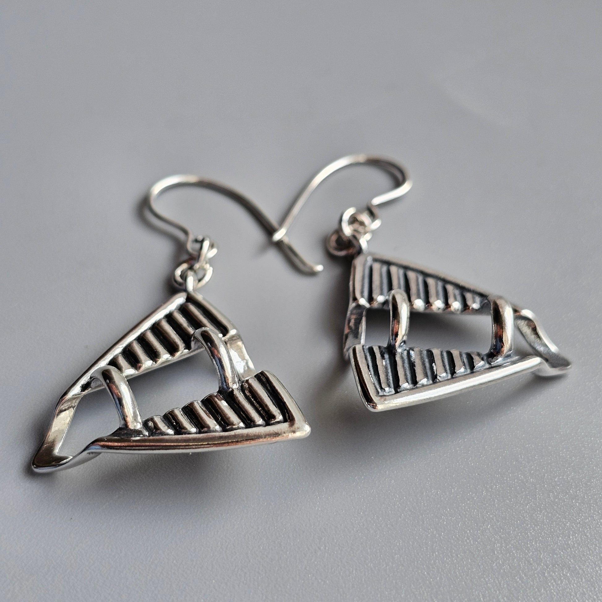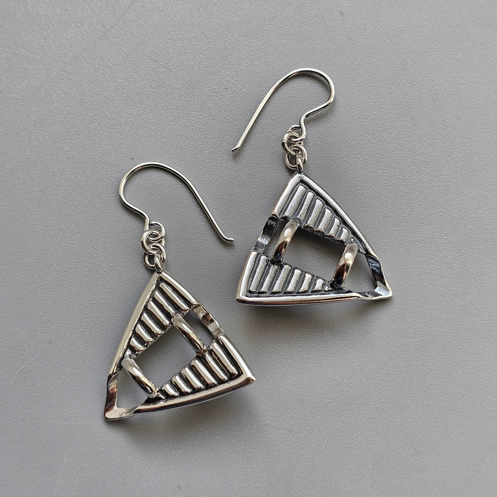 Vintage Finnish 1980s 1990s Triangle Sterling Silver Dangle Earrings