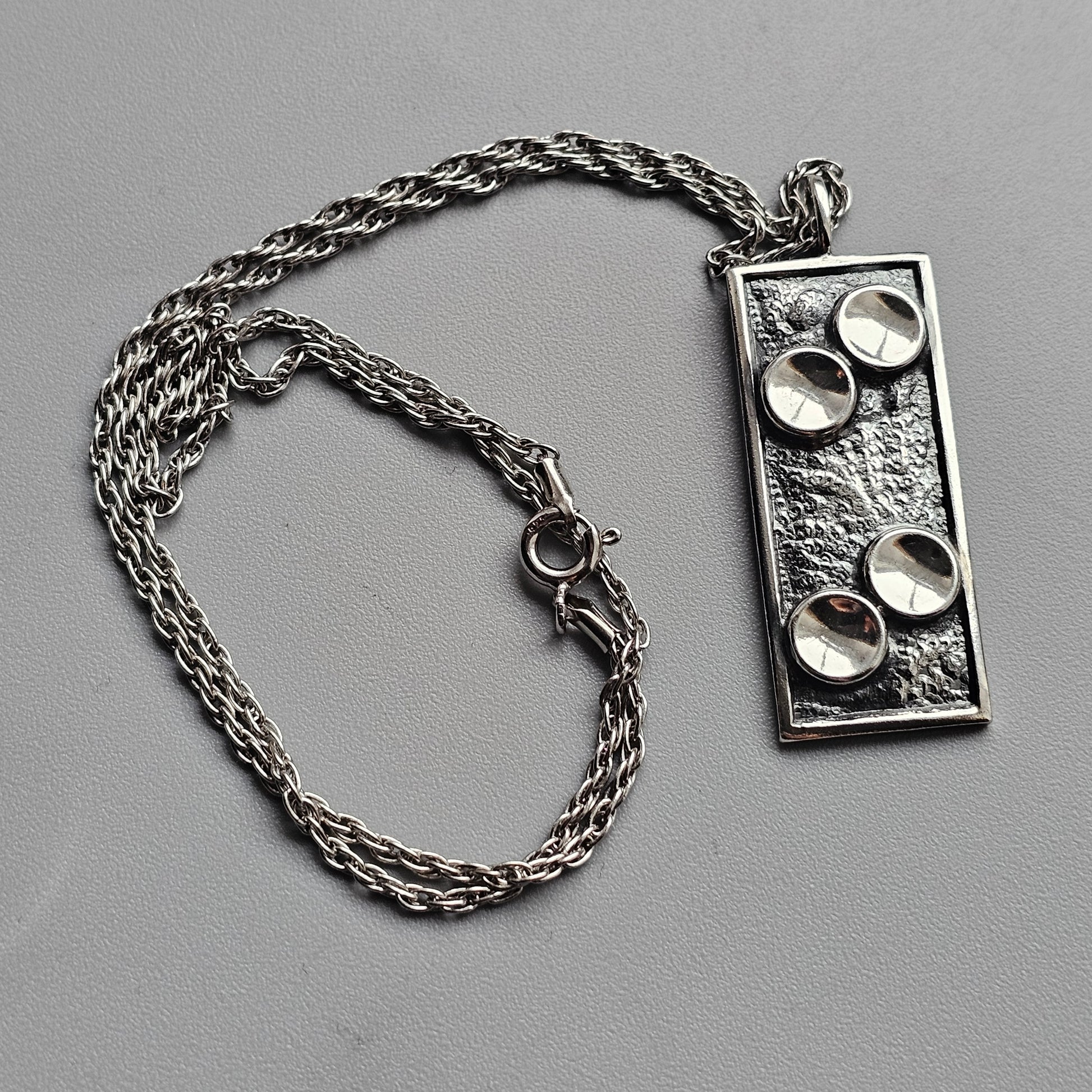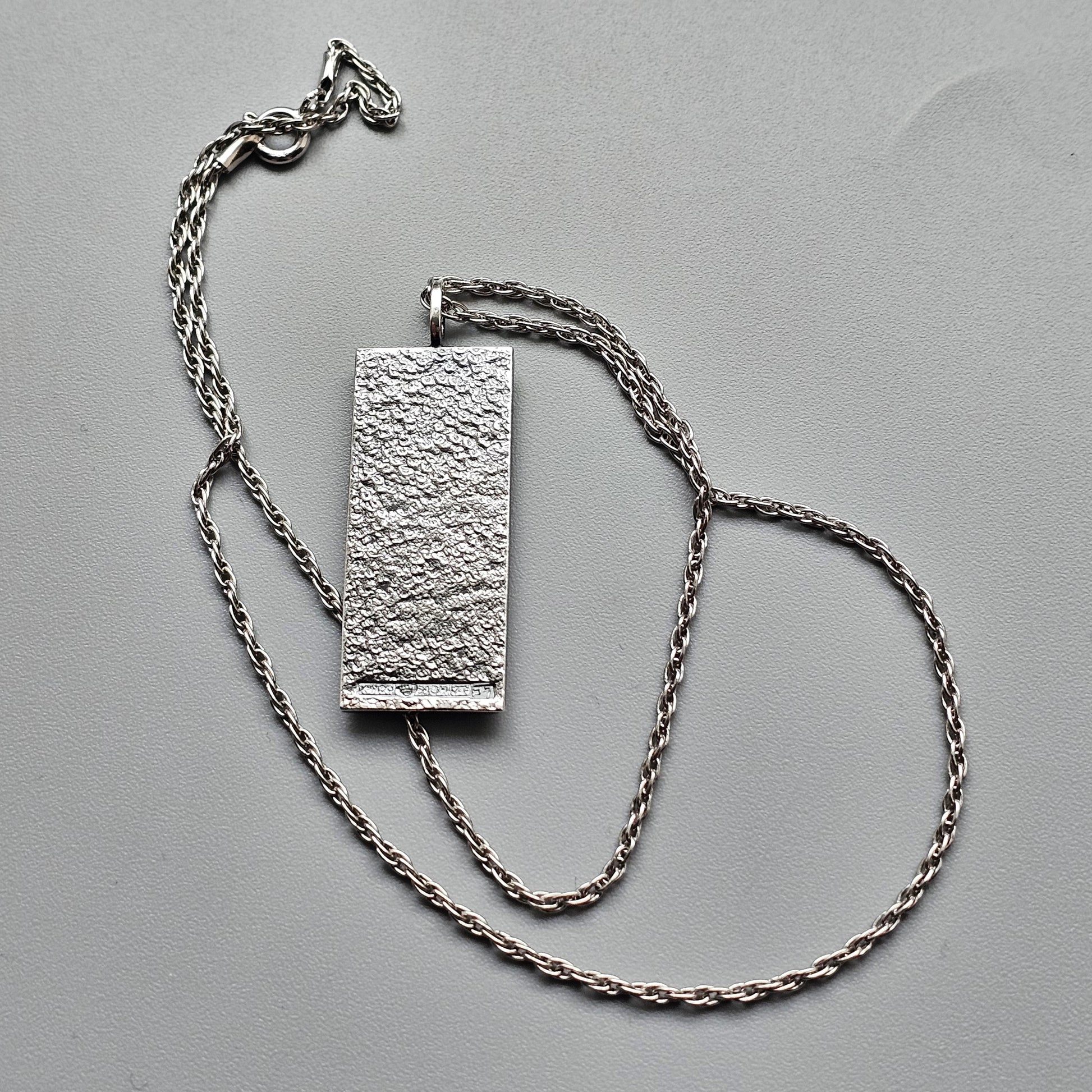 Vintage Finnish Modernist Textured Silver Pendant Necklace - 1968