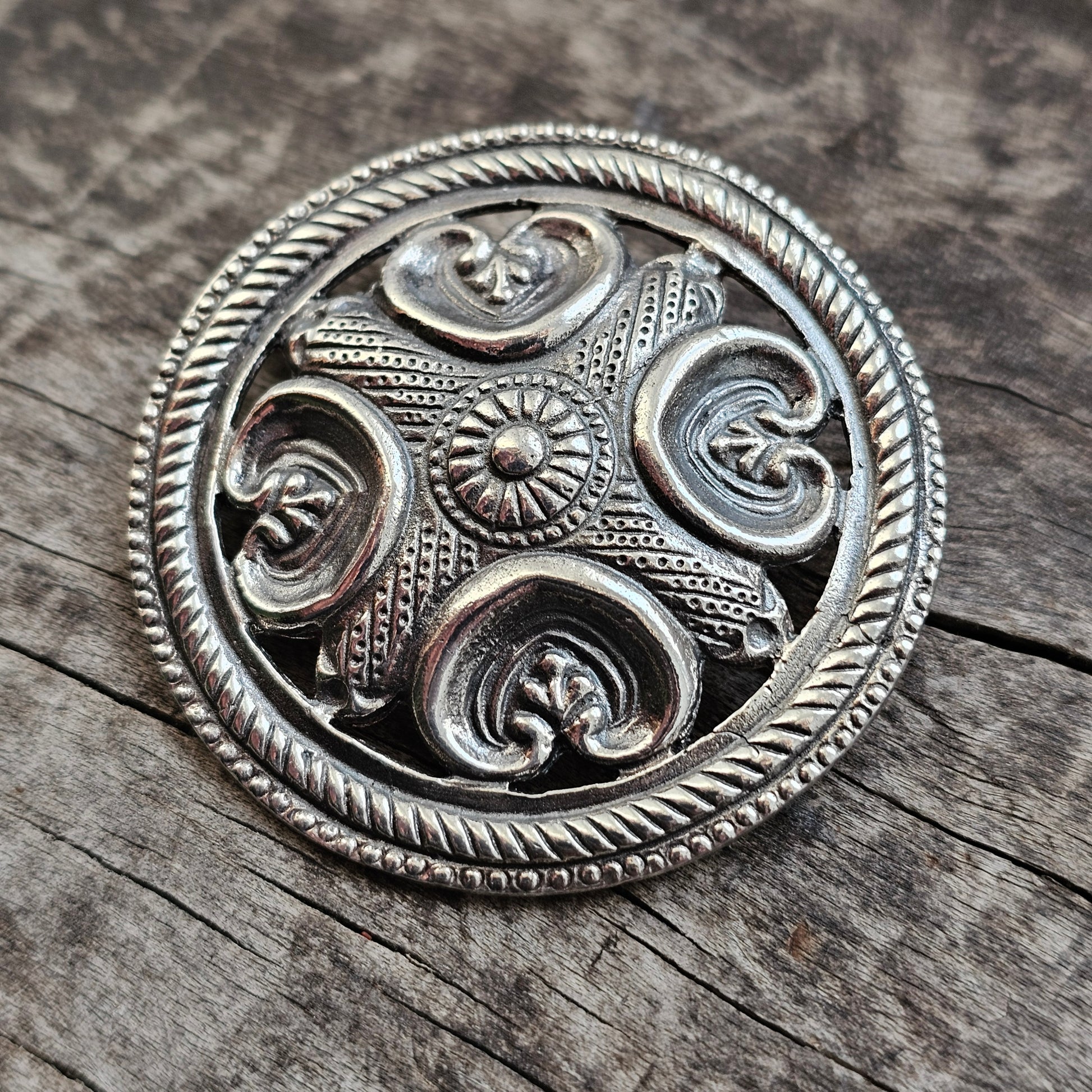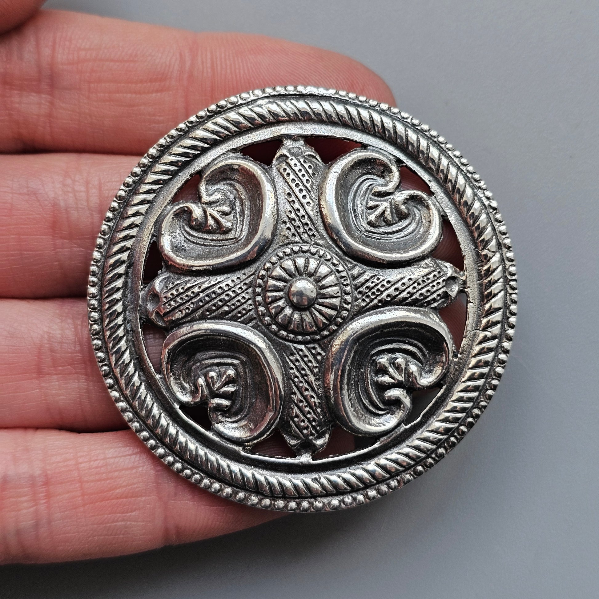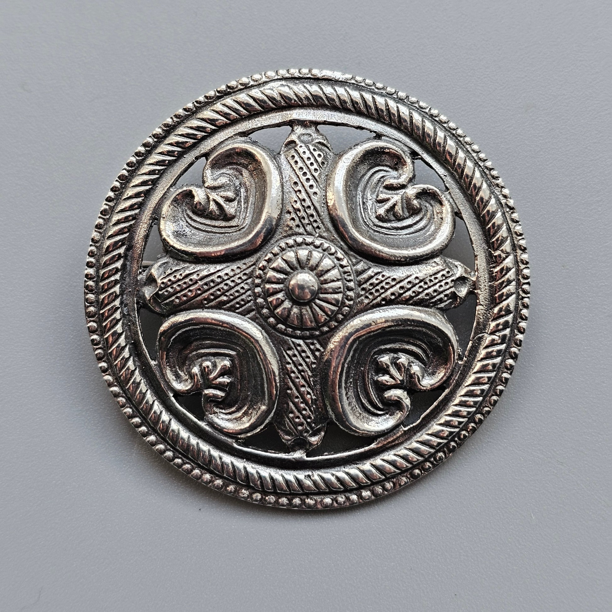 A vintage Kalevala Koru silver brooch inspired by a 12th-century design from Räisälä, Finland.