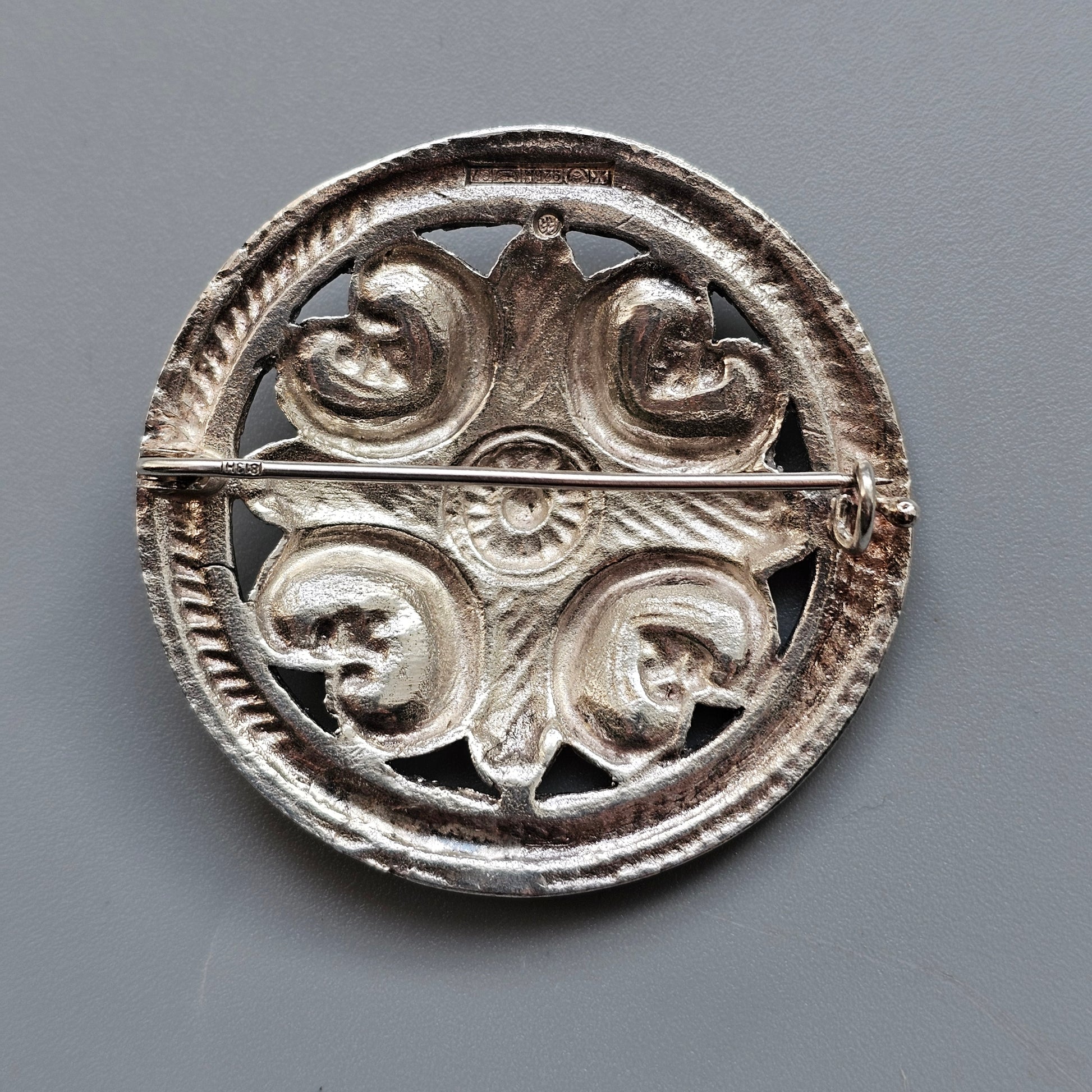 Vintage Kalevala Koru Räisälä Cross Sterling Silver Round Brooch – 12th Century Nordic Middle Ages Revival Design, Finland 1969