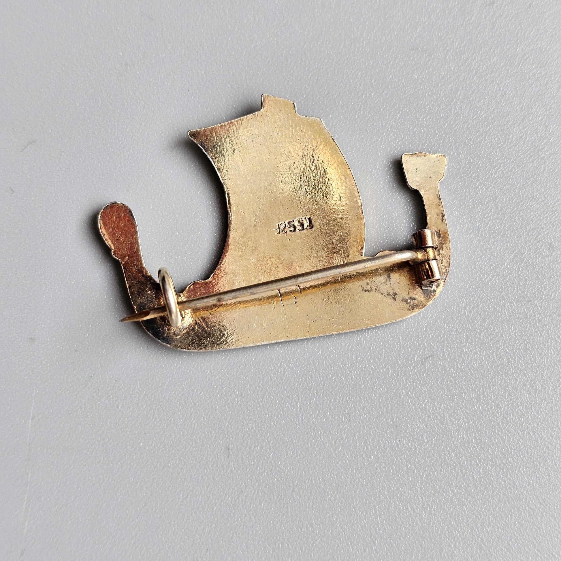 Vintage Norwegian Silver & Enamel Viking Ship Brooch – Edvin Kristiansen Norway