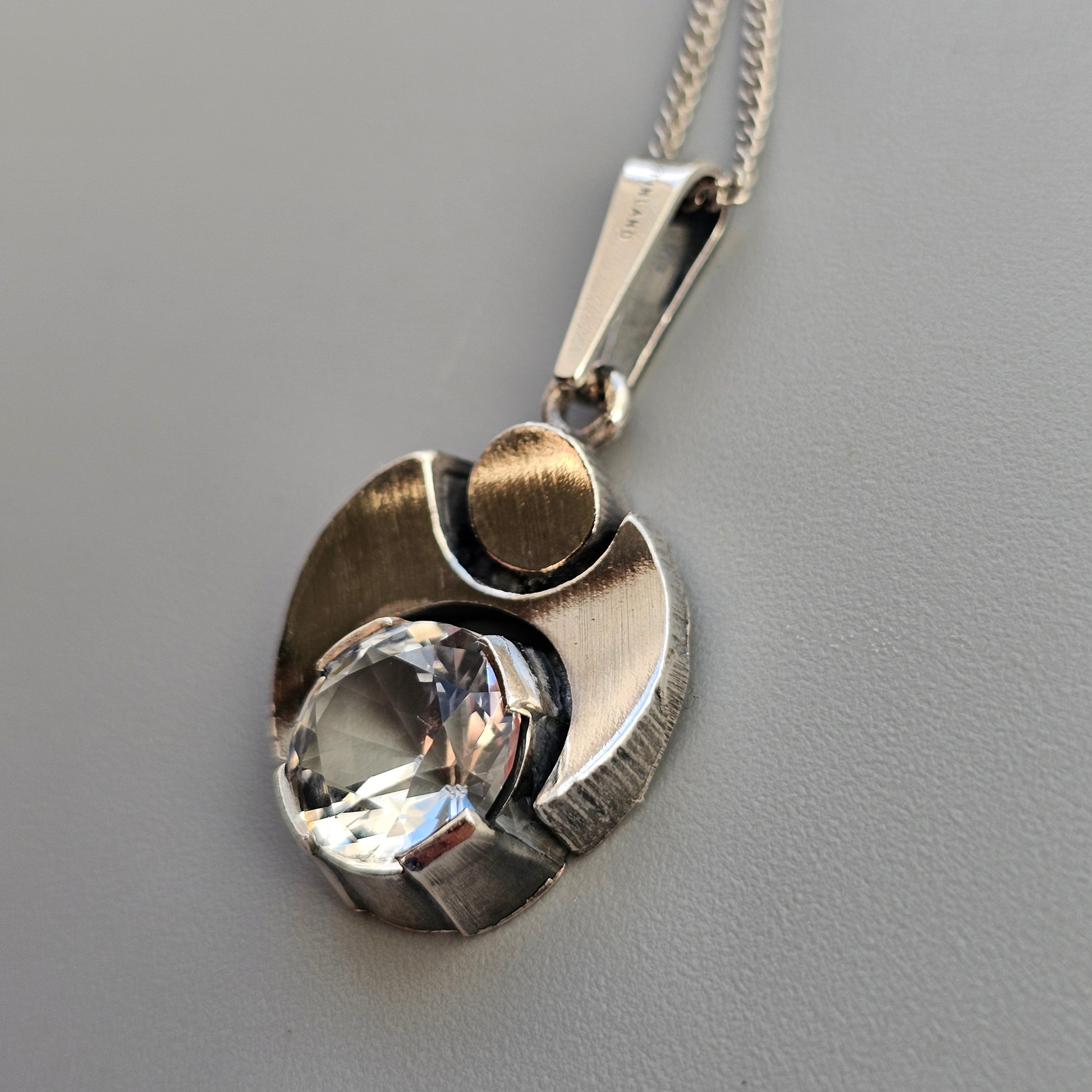 Vintage Sterling Silver & Rock Crystal Necklace Pendant by Karl Laine & Finnfeelings 1974
